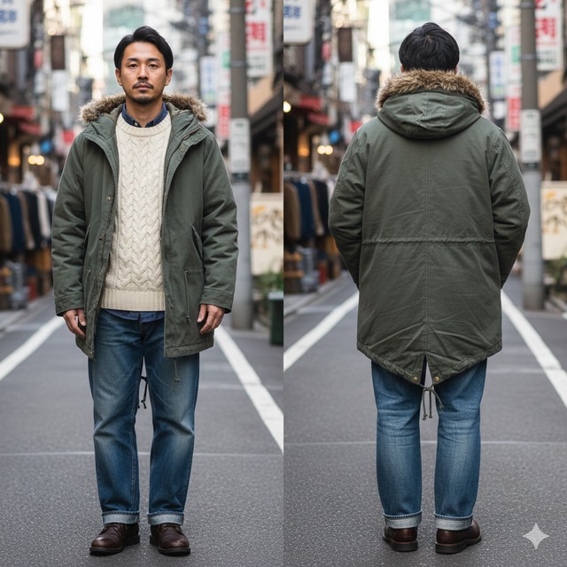 【肩幅47cm】【初期 旧タグ】GU ジーユー モッズコート M-65 フィッシュテールパーカー ダークオリーブ Mサイズ【湘南倉庫】メンズ古着 裏キルティング 16000926|CJ7