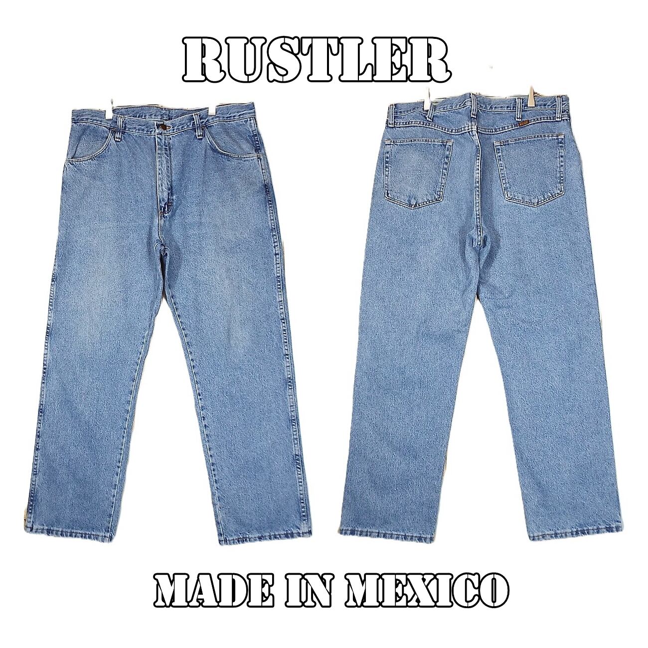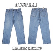 【1990年代ヴィンテージ】【ウエスト95cm】メキシコ製 RUSTLER ラスター ストーンウォッシュ ワイドライン デニムジーンズ サイズ38(ウエスト95cm)ブルー【湘南倉庫】メンズ古着 ビッグサイズ 大きいサイズ