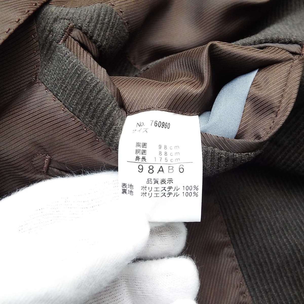 【身長175cmサイズ】Mr.DRIGO ミスタードリゴ ウールテイスト 長袖テイラードジャケット サイズ:98AB6(胸囲98cm・胴囲98cm)チャコールブラウン【湘南倉庫】メンズブランド古着