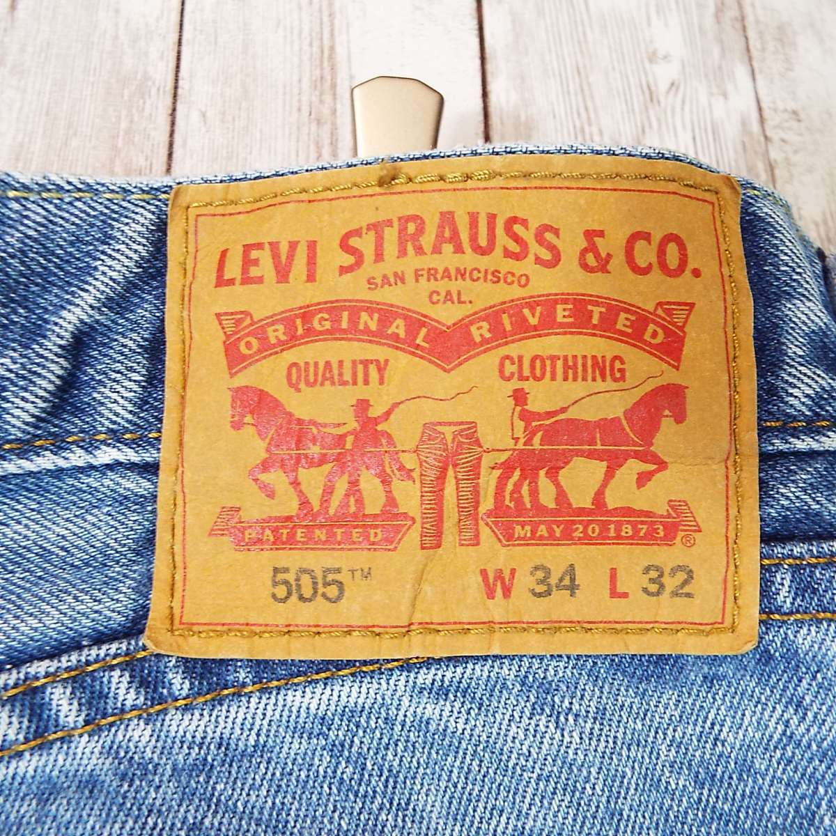 【ウェスト90cm(サイズ W34)】レソト製 Levi's リーバイス 505 ジップアップ 紙パッチ ブルージーンズ ボトムス【湘南倉庫】エイジングデニム メンズ古着