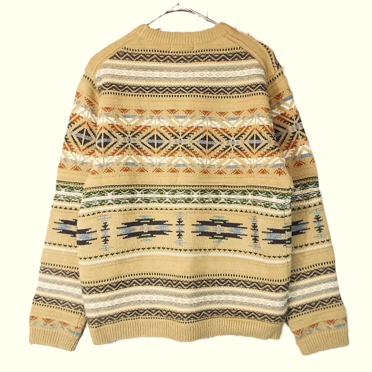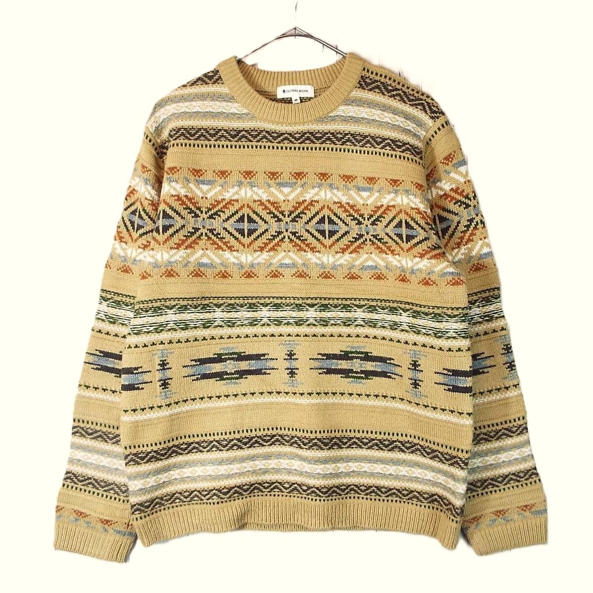 【肩幅44cm】GLOBAL WORK グローバルワーク フェアアイル柄 クルーネック 長袖ニットセーター Mサイズ キャメルブラウン【湘南倉庫】メンズブランド古着