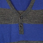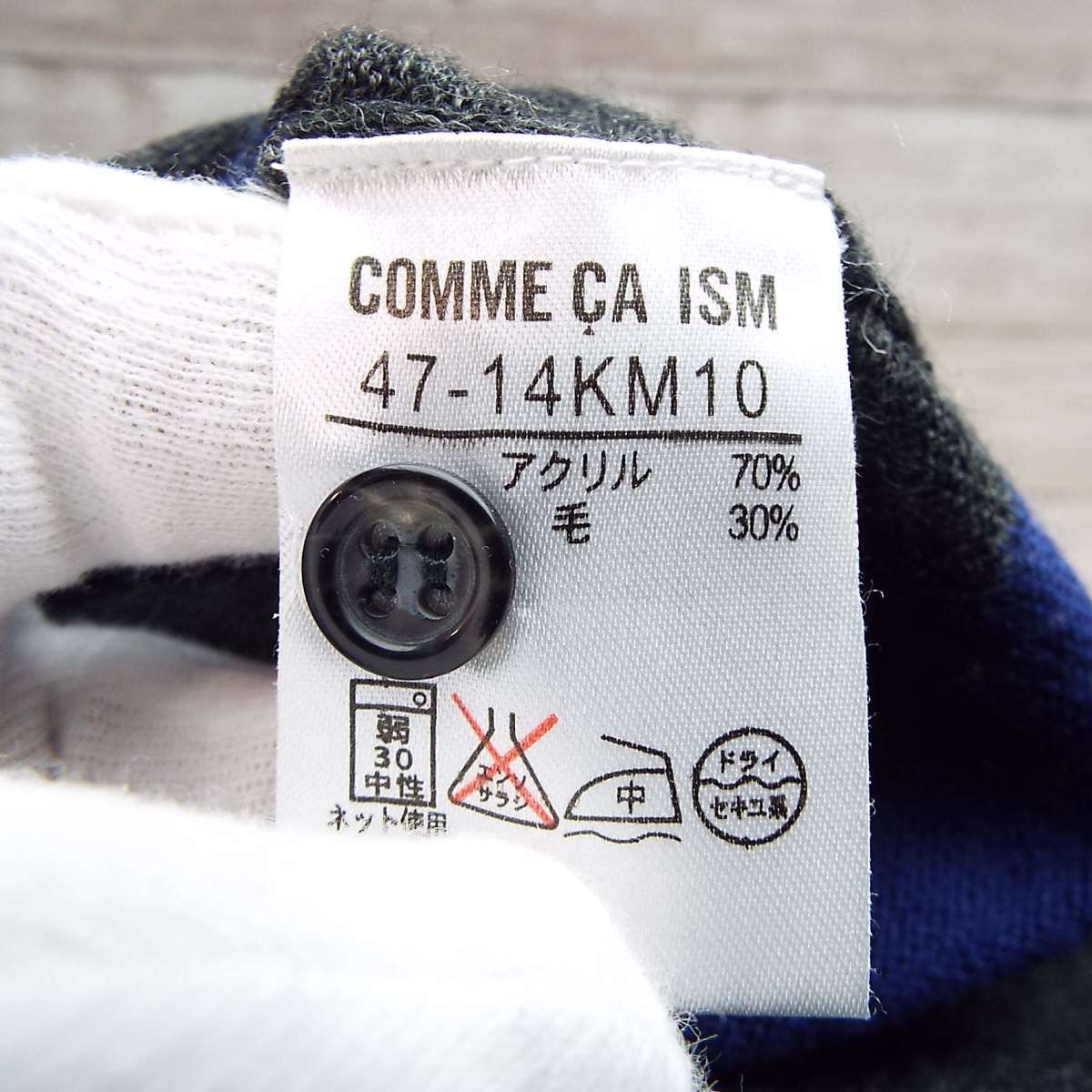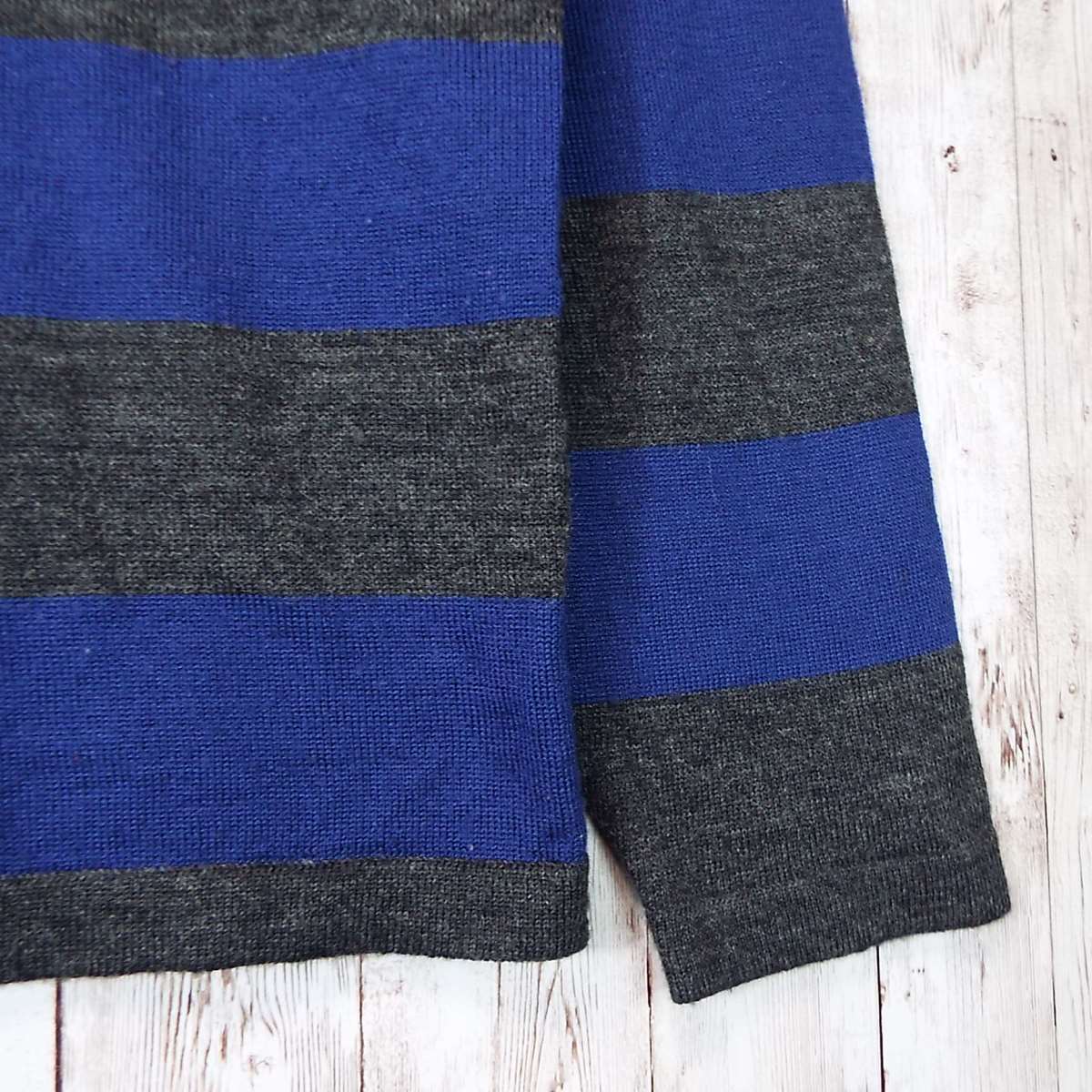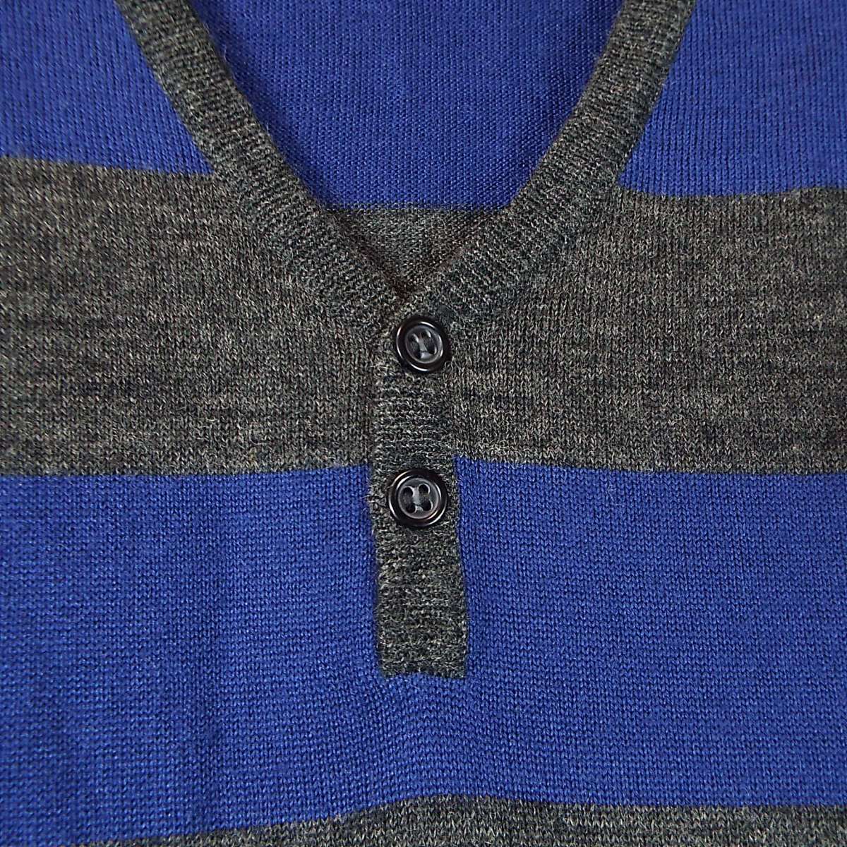 【ボタン留め】COMME CA IZM コムサイズム ボーダー柄 Vネック 長袖ニットセーター Mサイズ(肩幅cm)ブルー・グレー【湘南倉庫】メンズブランド古着
