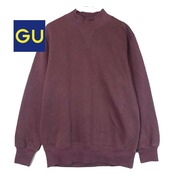 【肩幅45cm】GU ジーユー ミドルネック 裏起毛 長袖スウェットトレーナー Mサイズ ワインレッド(ボルドー) コットン・ポリエステル(60/40)【湘南倉庫】メンズブランド古着