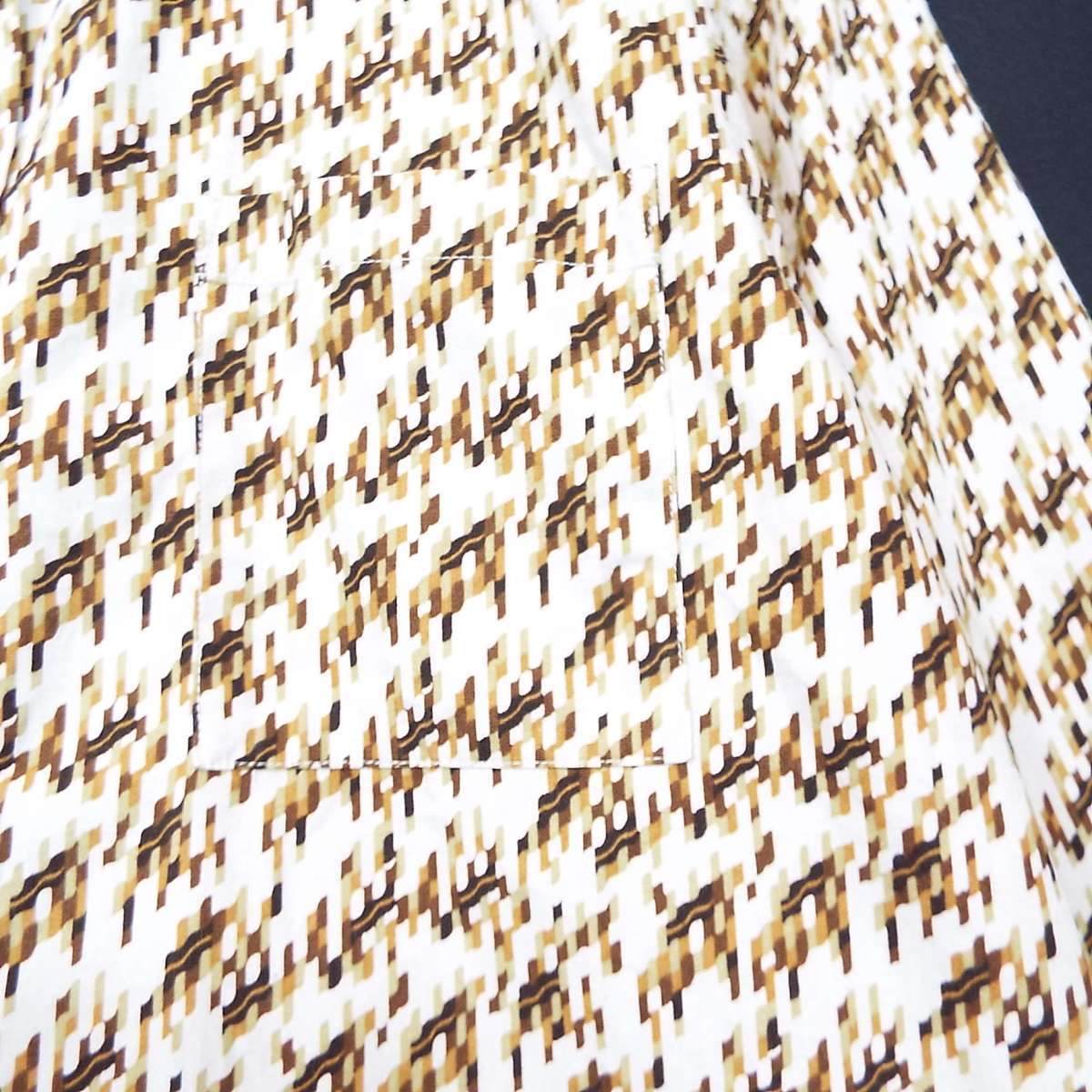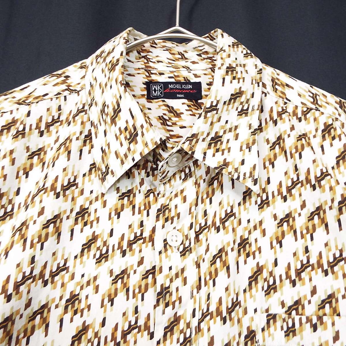 【お洒落さんにオススメ】MICHEL KLEIN homme MK ミッチェル・クライン 幾何学模様 総柄デザイン 長袖シャツ 46Fサイズ(肩幅44cm)ベージュホワイト・ブラウン【湘南倉庫】メンズブランド古着