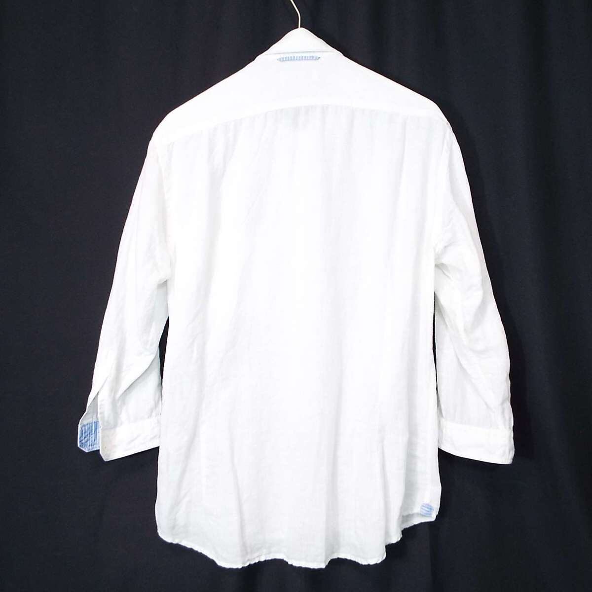 【綿&麻さらっとシャツ】JUN MEN ジュンメン ヘンプ混紡 無地 7分丈シャツ Sサイズ(肩幅44cm)ホワイト【湘南倉庫】メンズブランド古着