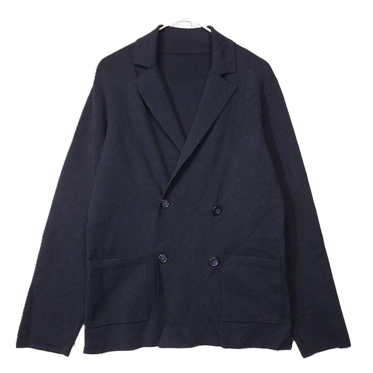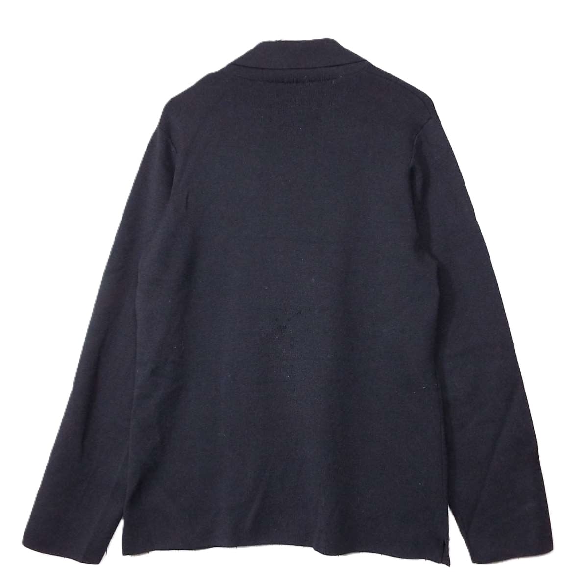 【ジャケットニット】SHIPS(シップス)ハイゲージ ウール混 4ボタン 長袖ニットカーディガン(ダブルジャケットスタイル)Sサイズ(肩幅40cm)ネイビー【湘南倉庫】メンズブランド古着