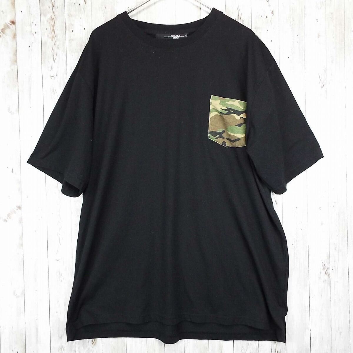 defective struct 胸ポケット 迷彩 カモフラ 半袖Tシャツ ブラック 5Lサイズ コットン混 ビッグサイズ メンズ古着 USED 男女兼用 春夏 【湘南倉庫】