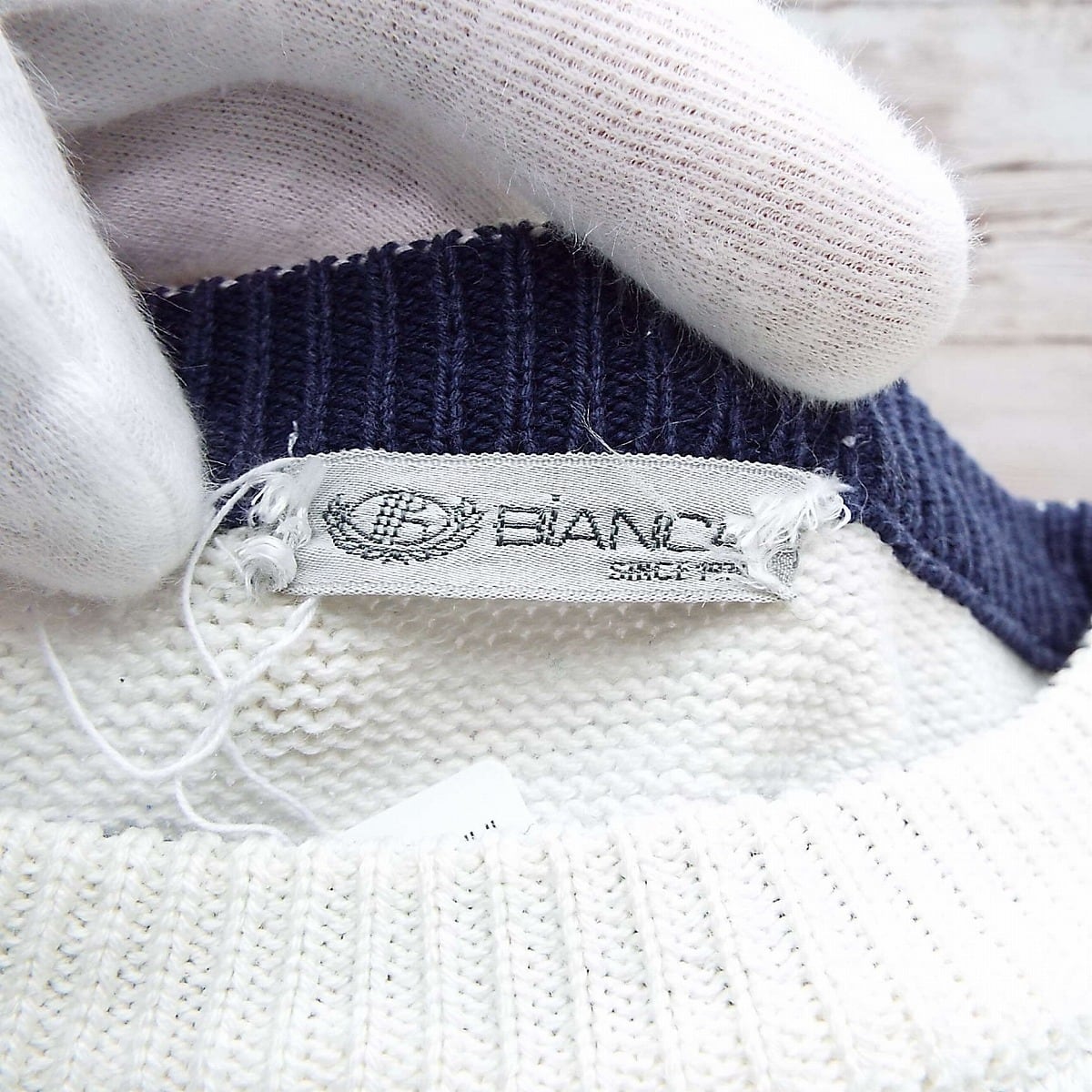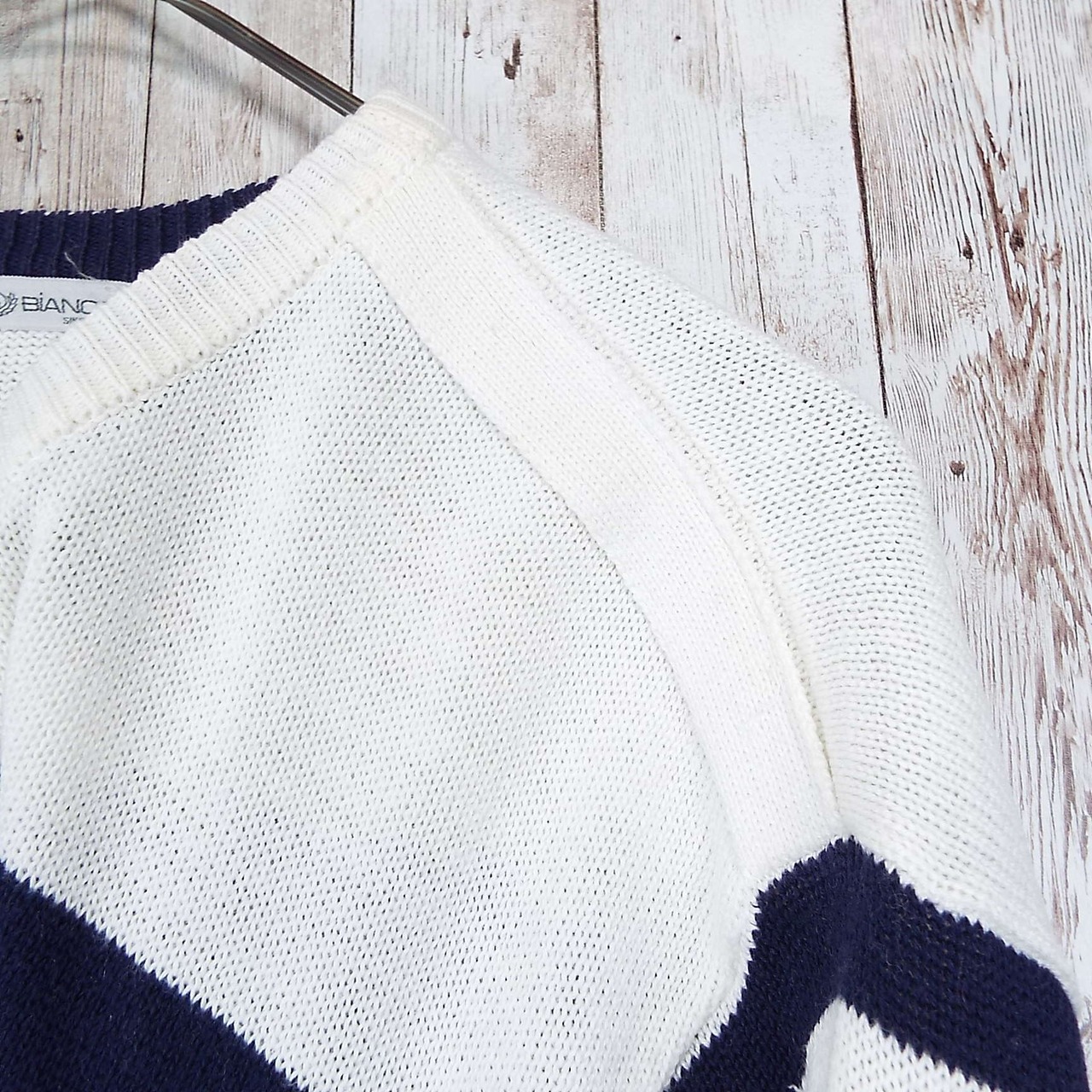 日本製 BIANCA INVIGORATE SEAPORT International 港 船 イカリ 刺繍ロゴ ボーダー柄 長袖ニット コットン混 XLサイズ メンズ古着 ユニセックス 春夏物【湘南倉庫】