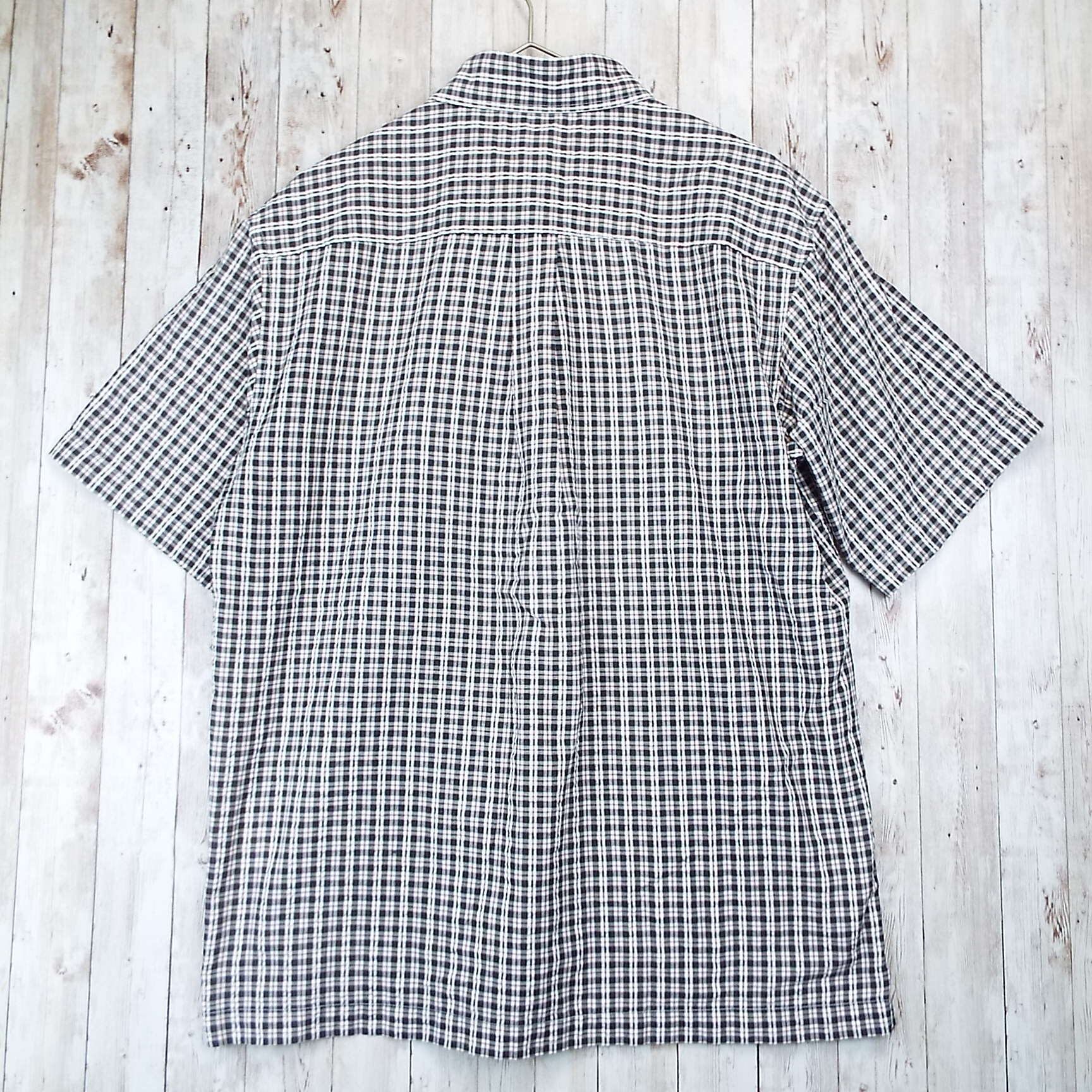 RIZMAX チェック柄 ボタンダウン BD ワッフル素材 半袖シャツ Lサイズ ホワイト・ブラック ブラウン コットン混 メンズ古着 ユニセックス【湘南倉庫】