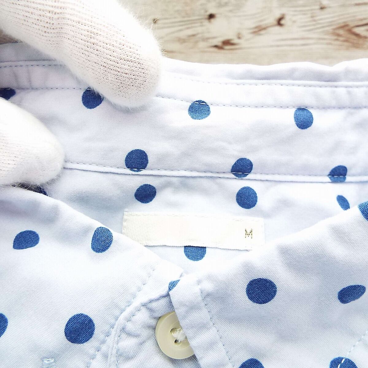 UNIQLO ユニクロ ドット 総柄 ボタンダウン BD 半袖シャツ Mサイズ コットン100% スカイブルー メンズ古着 ユニセックス 可愛い柄シャツ【湘南倉庫】