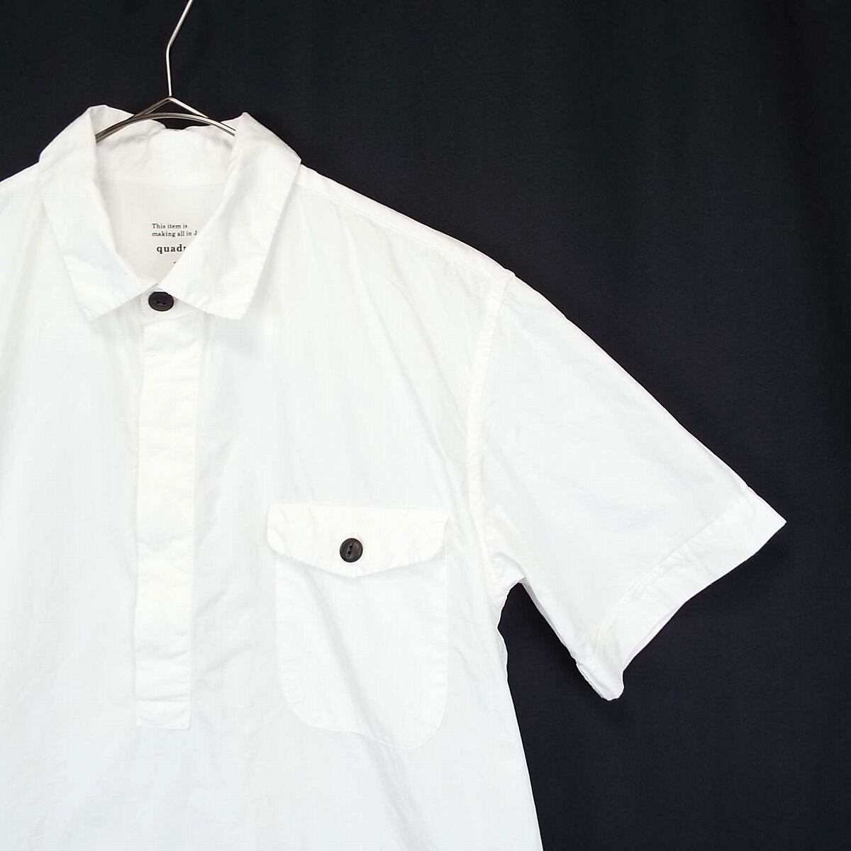 quadro クオドロ 日本製 猫目ボタン シャンブレー ワークスタイル 半袖シャツ コットン100% サイズ2(M-Lサイズ) ホワイト メンズ古着 ユニセックス 春夏物【湘南倉庫】