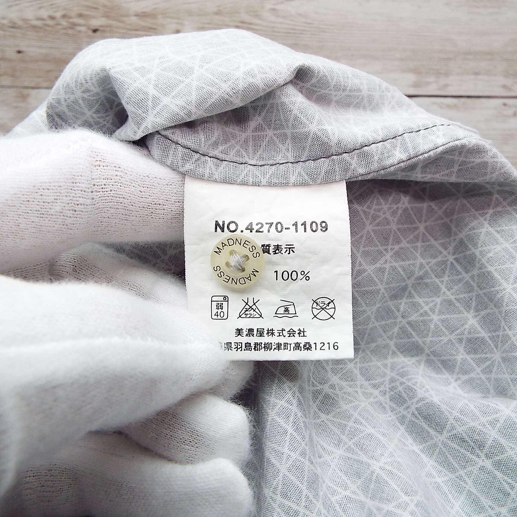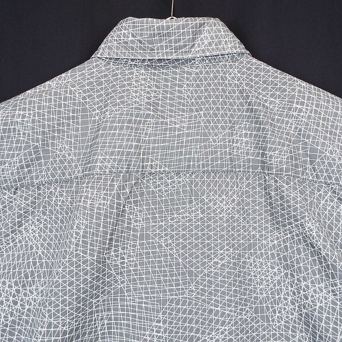 MADNESS マッドネス 幾何学模様 ダブルポケット 半袖シャツ コットン100% Lサイズ ライトグレー メンズ古着 ユニセックス 春夏物【湘南倉庫】