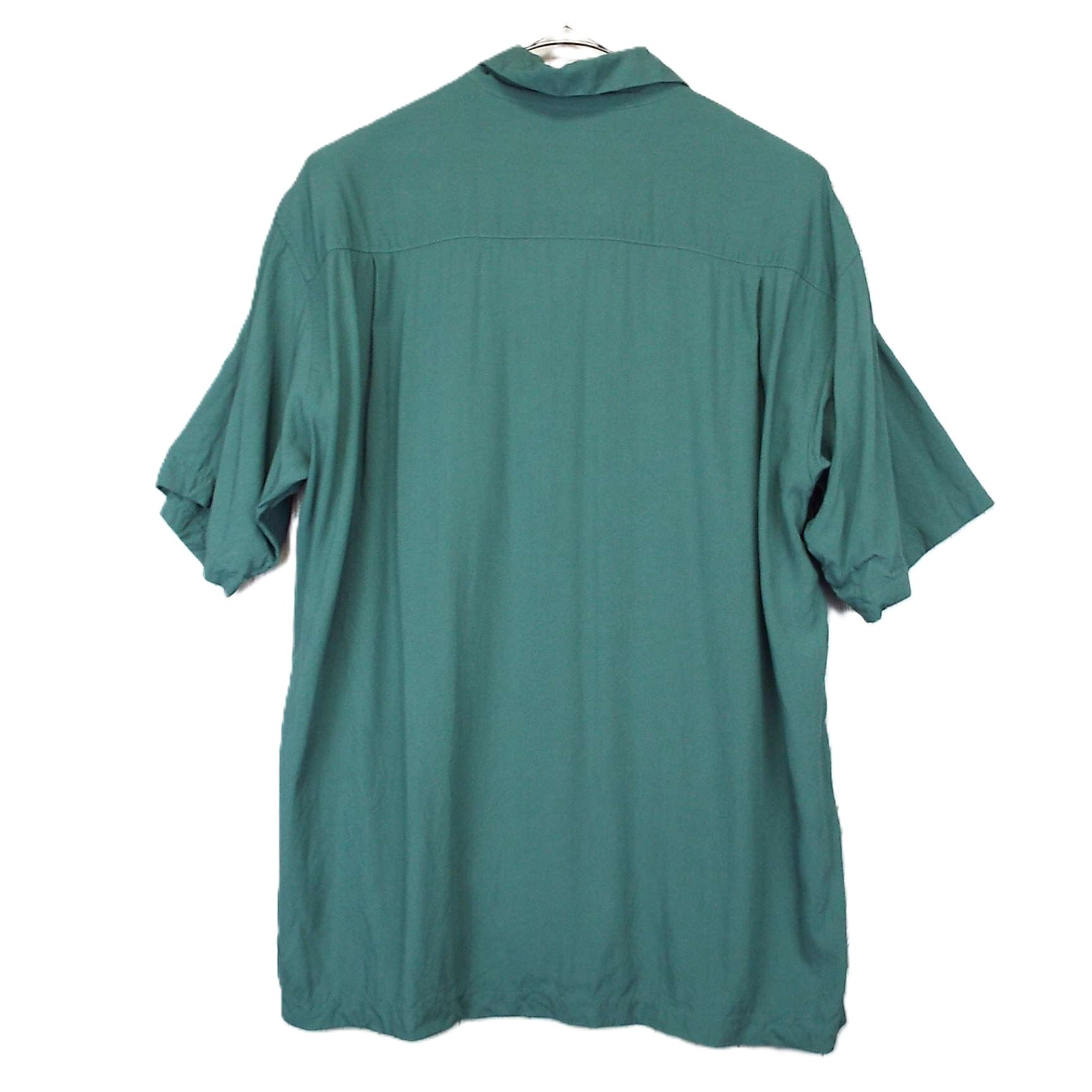 【肩幅48cm】【レーヨン100%】GU ジーユー 開襟 接触冷感素材 DRY機能 半袖シャツ Mサイズ グリーン【湘南倉庫】メンズ古着