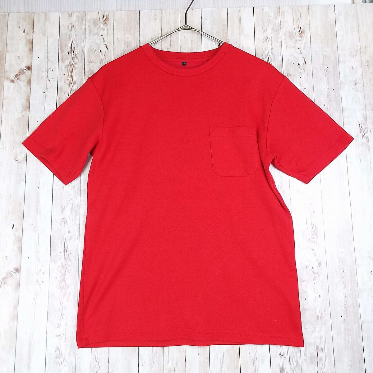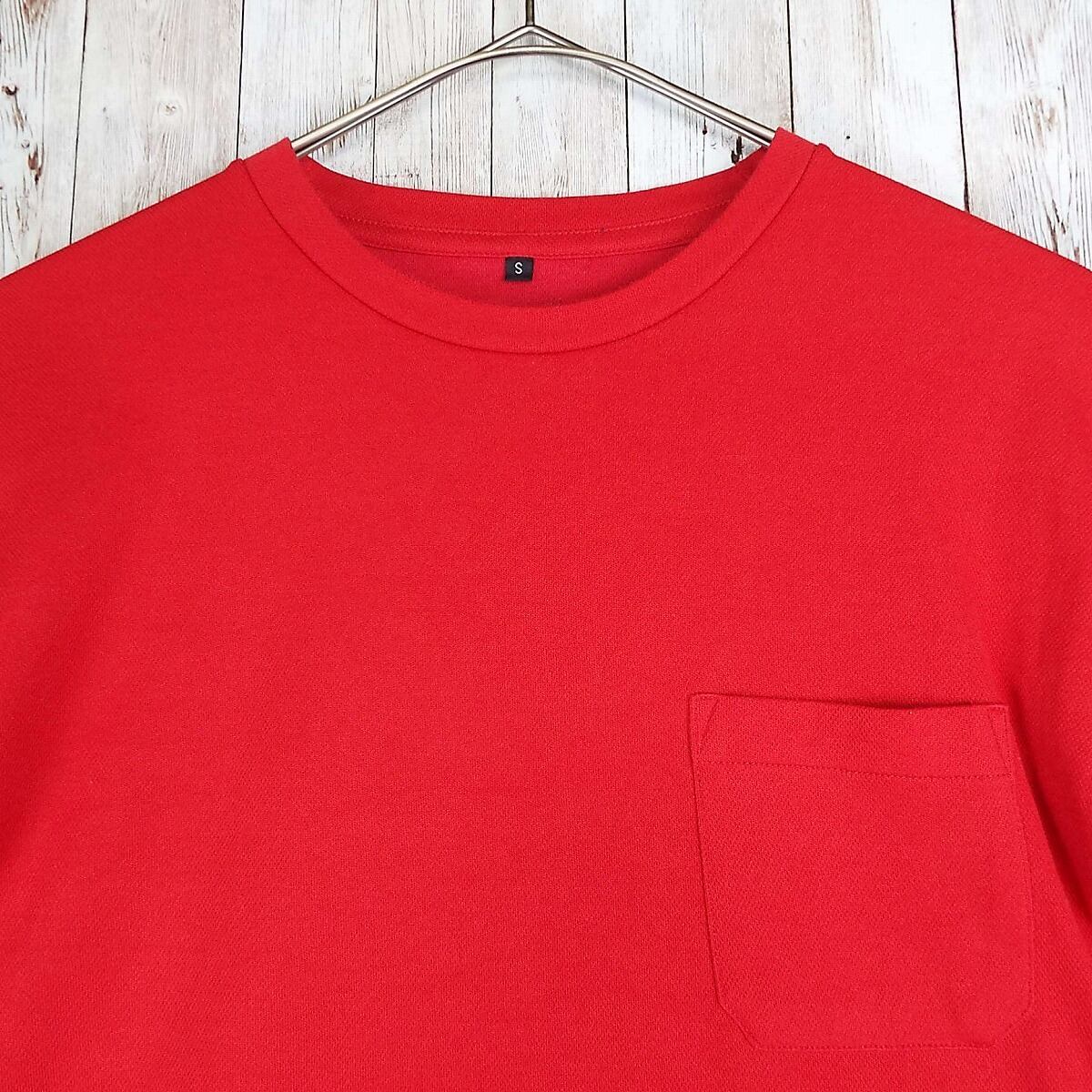 丸森扱い 速乾素材 プレーン 無地 半袖Tシャツ レッド Sサイズ メンズ古着【湘南倉庫】