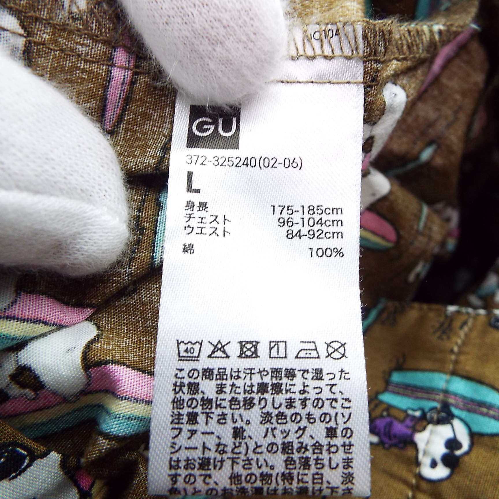 スヌーピー大好き|GU×ピーナッツスヌーピー サーフィン 総柄 半袖シャツ ブラウン Lサイズ メンズ古着【湘南倉庫】パジャマ 春夏 S/S
