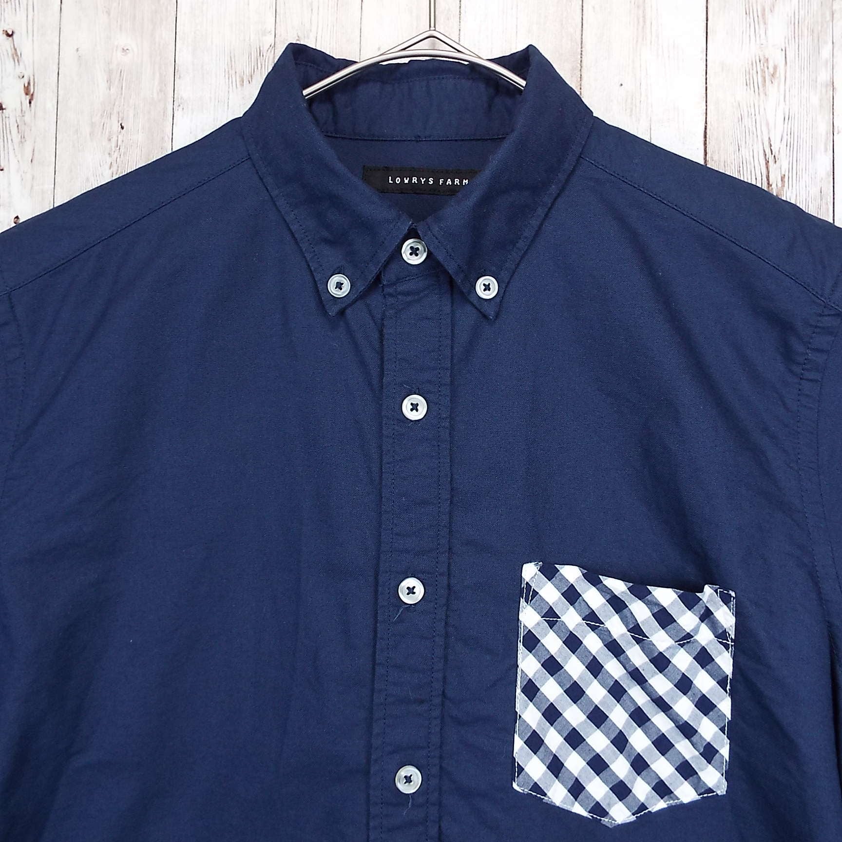 ギンガムチェックの胸ポケが◎|LOWRYS FARM ボタンダウンBD 半袖シャツ ネイビー Mサイズ メンズ古着【湘南倉庫】春夏 S/S