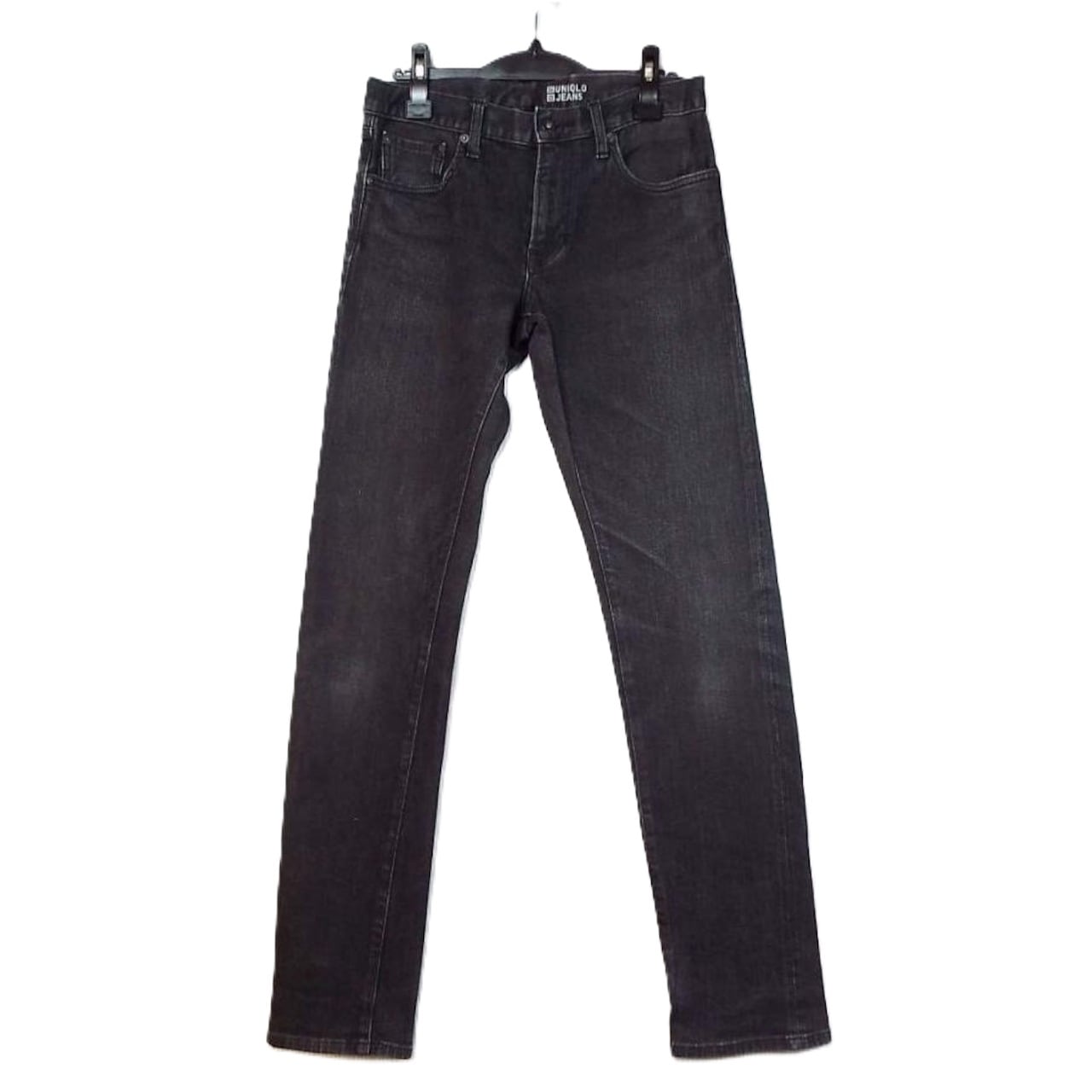 【ウエスト82cm】UNIQLO JEANS ユニクロジーンズ SLIM FIT 伸縮 赤耳 スリムフィット ストレッチセルビッジ デニム ジーパン|ブラック サイズ :30インチ メンズ古着【湘南倉庫】