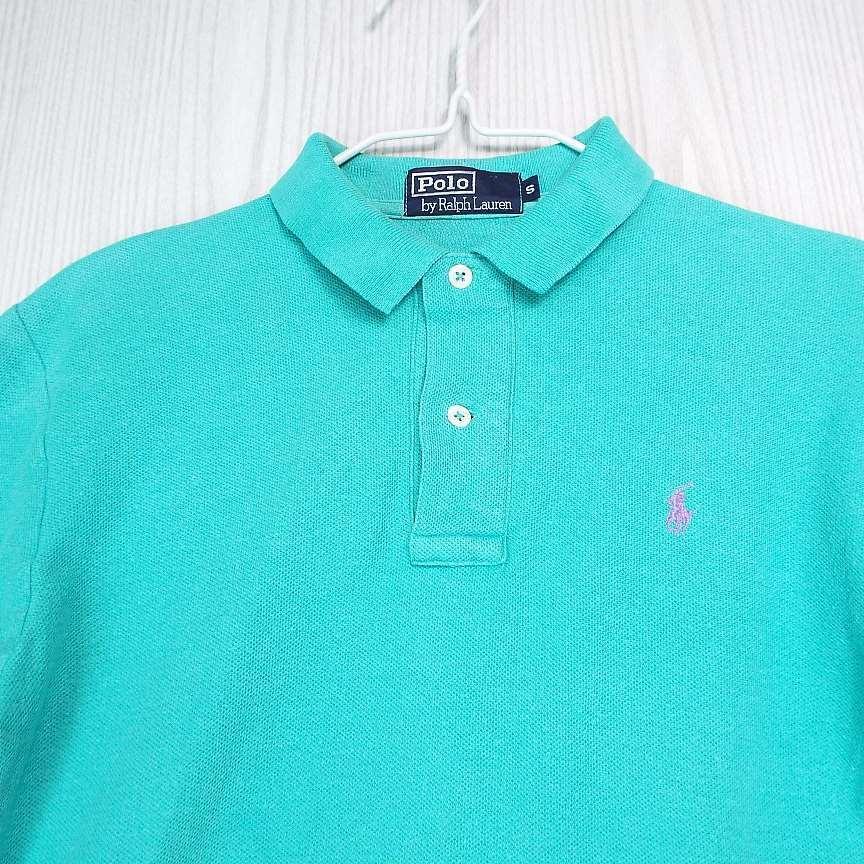 【90年代(ナイガイ製)】RALPH LAUREN ラルフローレン カノコ 鹿の子 半袖ポロシャツ|スピンドリフト・ブルーグリーン|Sサイズ 春夏物【湘南倉庫】ゴルフウエア◎
