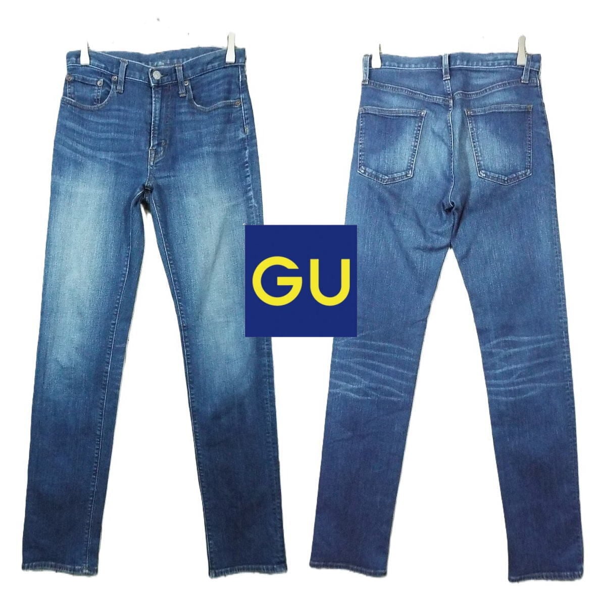 【細身男子のストレッチパンツ】GU ジーユー 伸縮素材 スキニーパンツ サイズ28(ウエスト75cm)インディゴブルー【湘南倉庫】メンズブランド古着 ボトムス