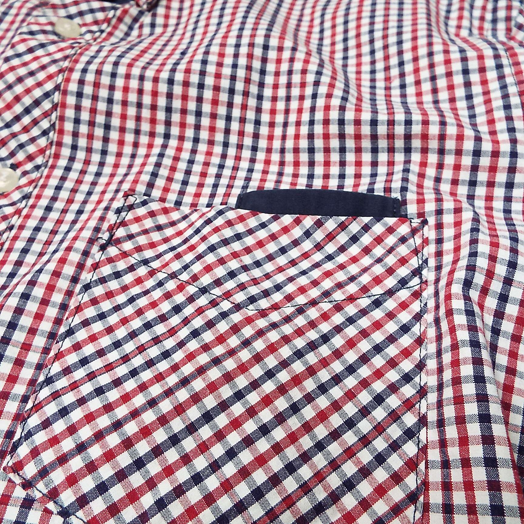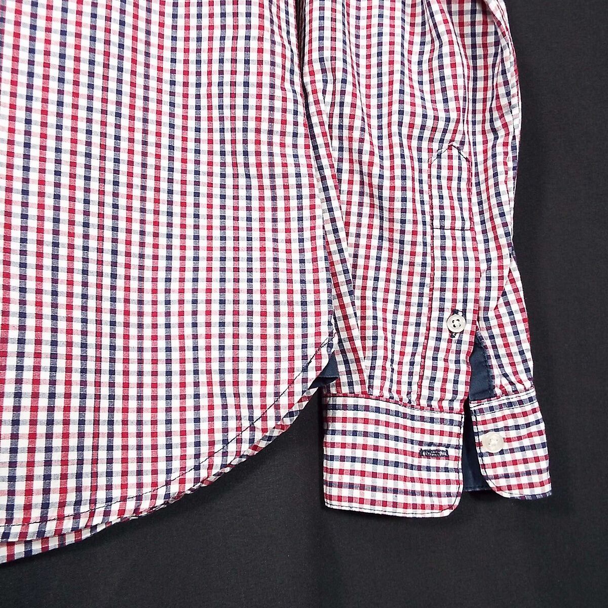 【肩幅43cm】BEAMS HEART ビームスハート ロールアップボタンつき ボタンダウン 長袖シャツ Mサイズ ホワイト・レッド・ブラック【湘南倉庫】メンズ古着 14000966