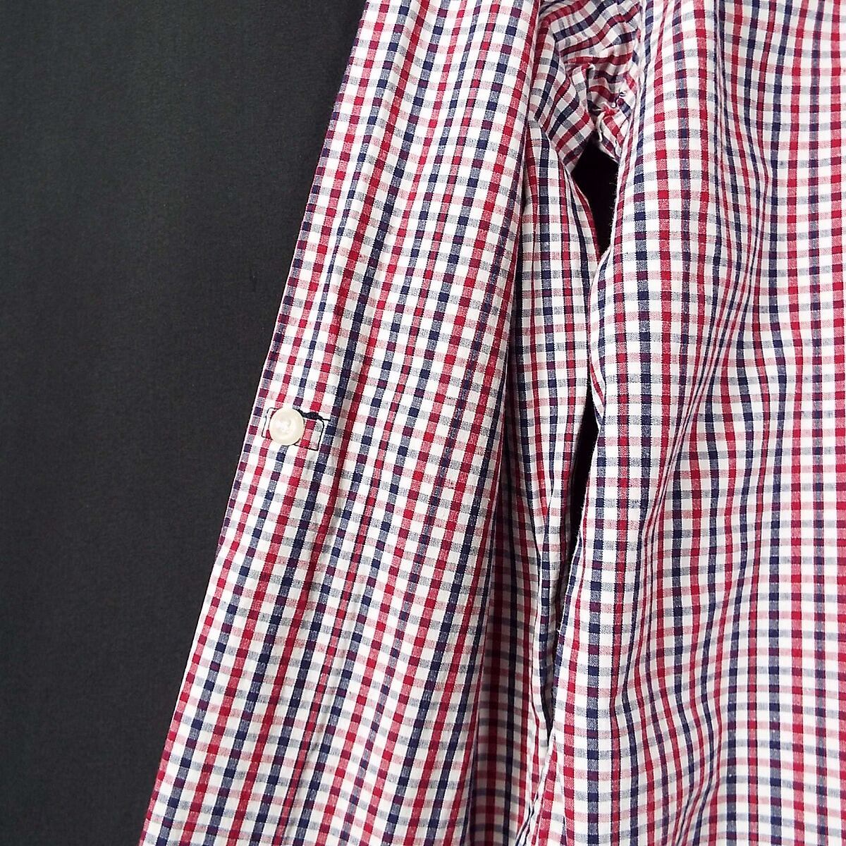 【マルチギンガムチェック】BEAMS HEART ビームスハート ロールアップボタンつき ボタンダウン 長袖シャツ Mサイズ(肩幅43cm)ホワイト・レッド・ブラック【湘南倉庫】メンズ古着 14000966