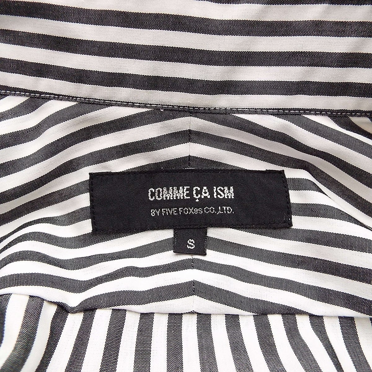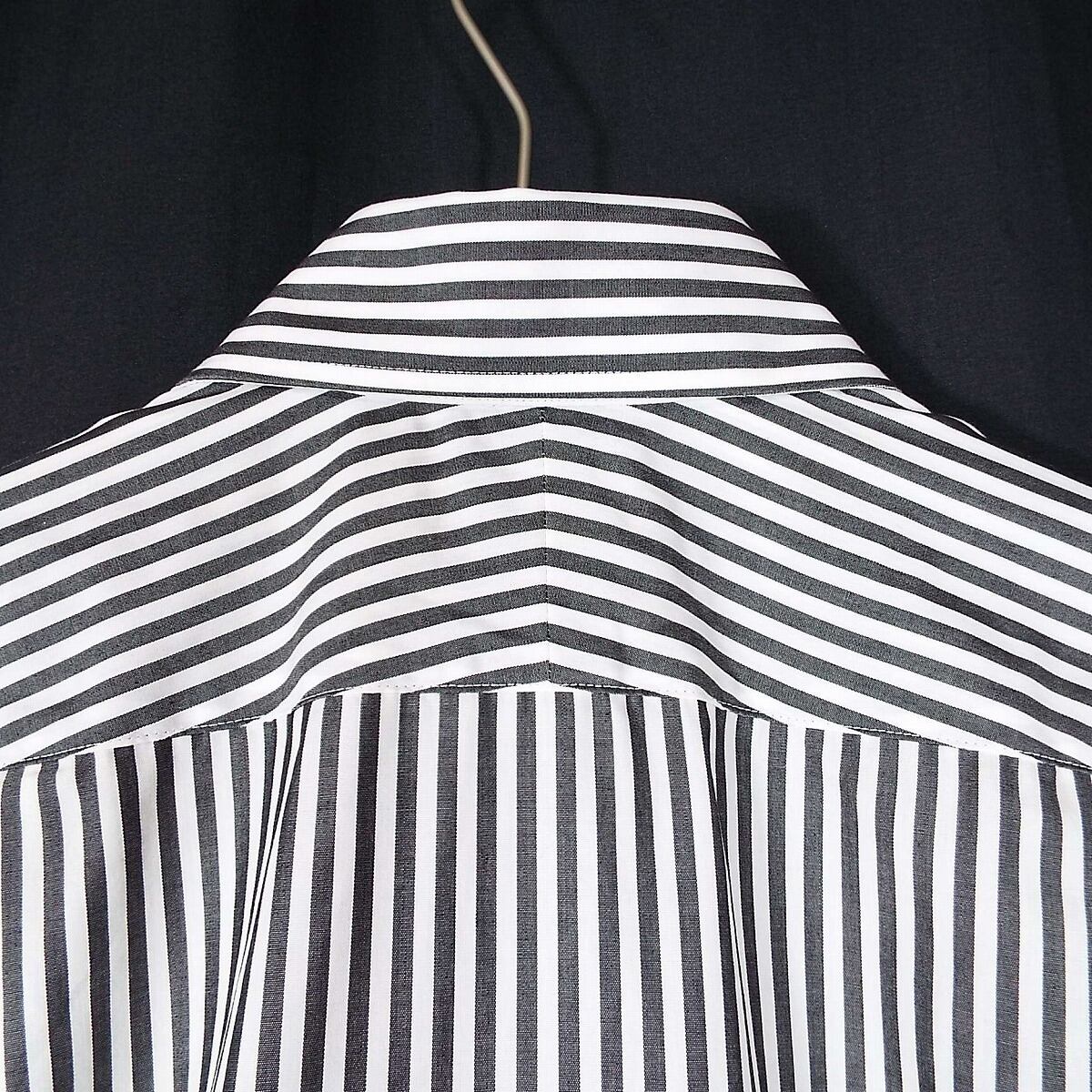 【肩幅41.5cm】COMME CA ISM コムサイズム ホリゾンタル ストライプ柄 長袖シャツ Sサイズ ホワイト・ブレーブラック【湘南倉庫】メンズ古着 14000829