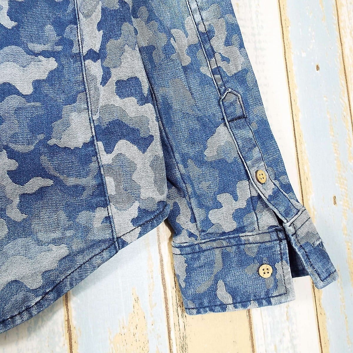 【肩幅45cm】by Bean's バイビーンズ デニム素材 カモフラージュ柄 長袖シャツ Lサイズ インディゴブルー【湘南倉庫】アメカジ メンズブランド古着 4912345014016