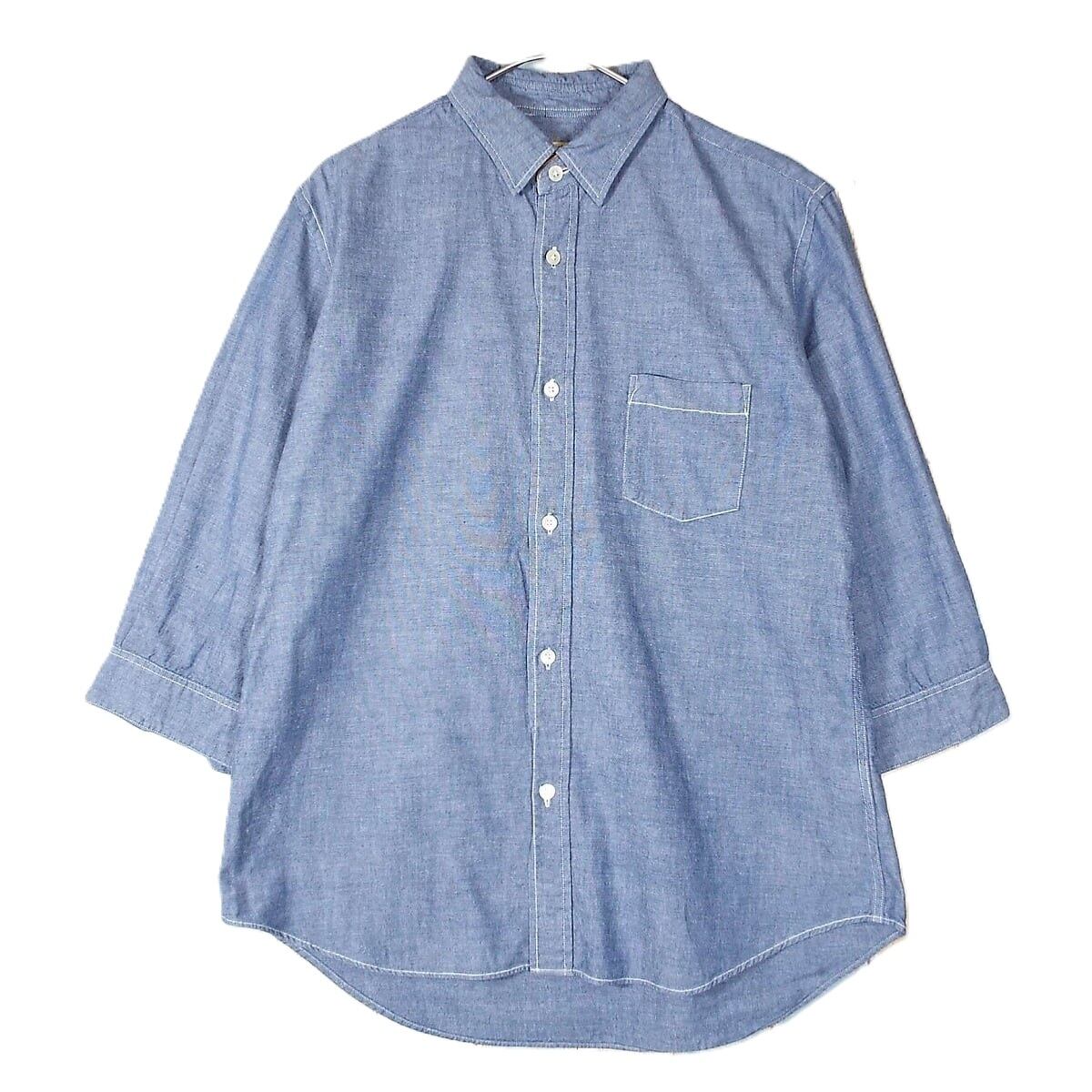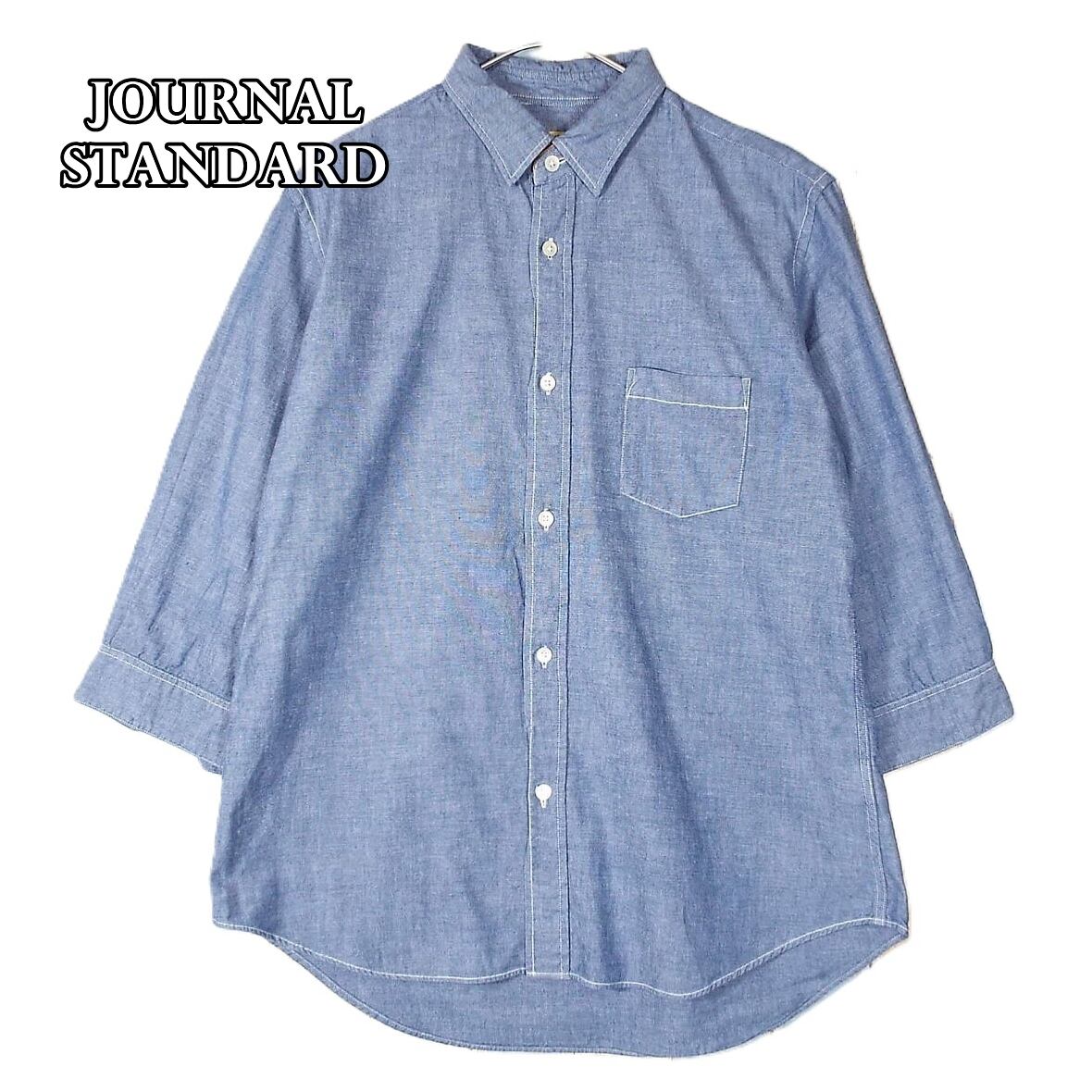 【肩幅45cm】日本製 Journal Standard ジャーナルスタンダード カジュアル オックスフォード 7分丈シャツ Lサイズ ブルー【湘南倉庫】メンズ古着 14000959