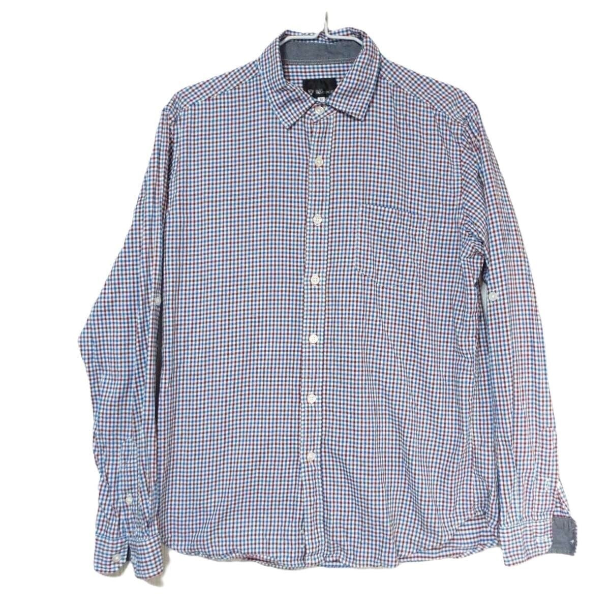 【カジュアルシャツ】THE SHOP TK MIXPICE タケオキクチ チェック柄 胸ポケ 長袖シャツ ホワイト・ブラウン・ブルー白茶青 Mサイズ【湘南倉庫】メンズ古着 15000613