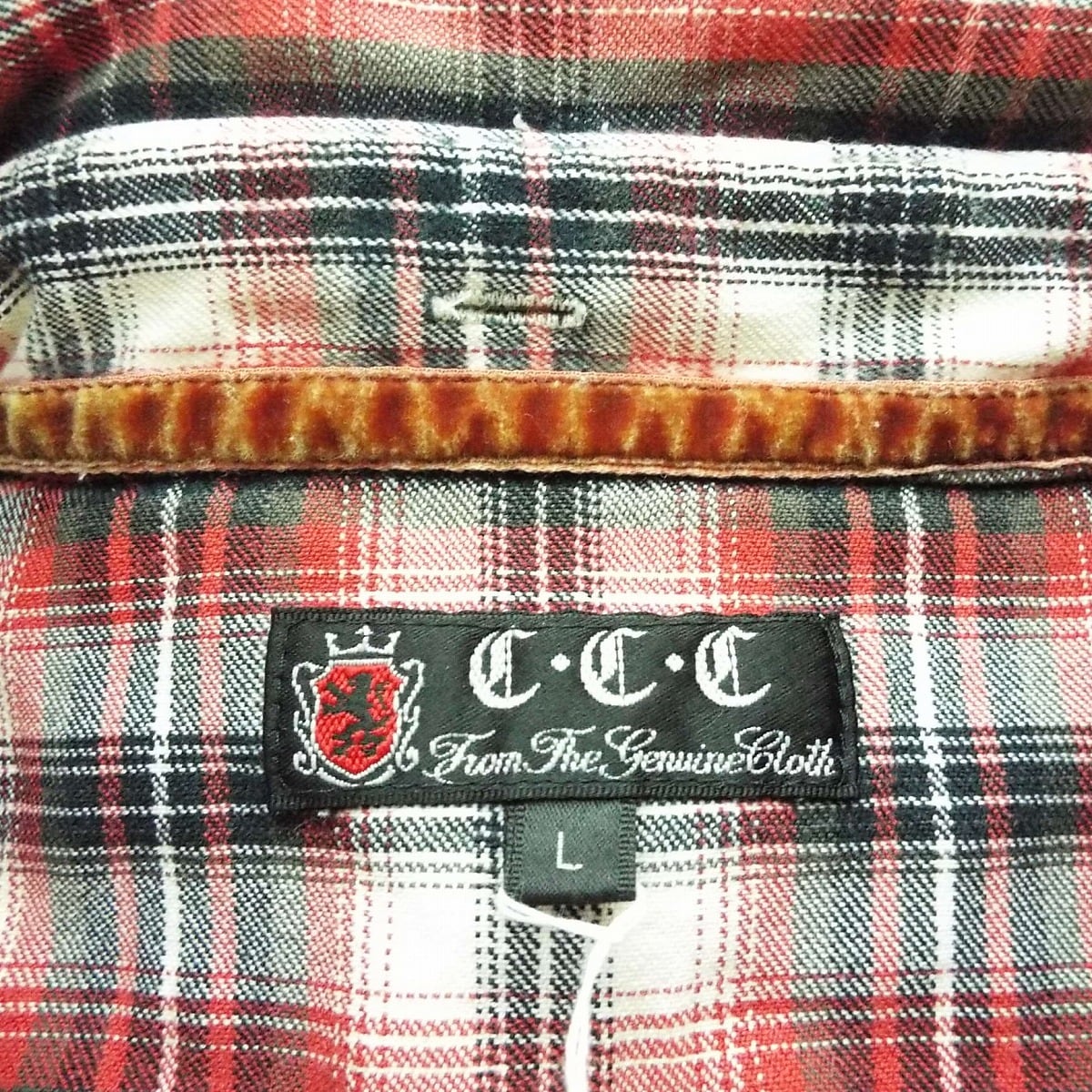 【パールボタンのウエスタンシャツ】C・C・C スナップボタン フランネル 長袖シャツ ホワイト・レッド・ブラック白赤黒 Lサイズ【湘南倉庫】メンズ・ユニセックス古着 12350063
