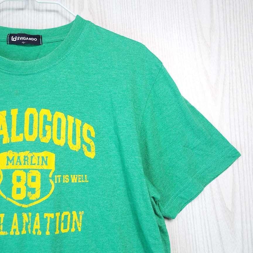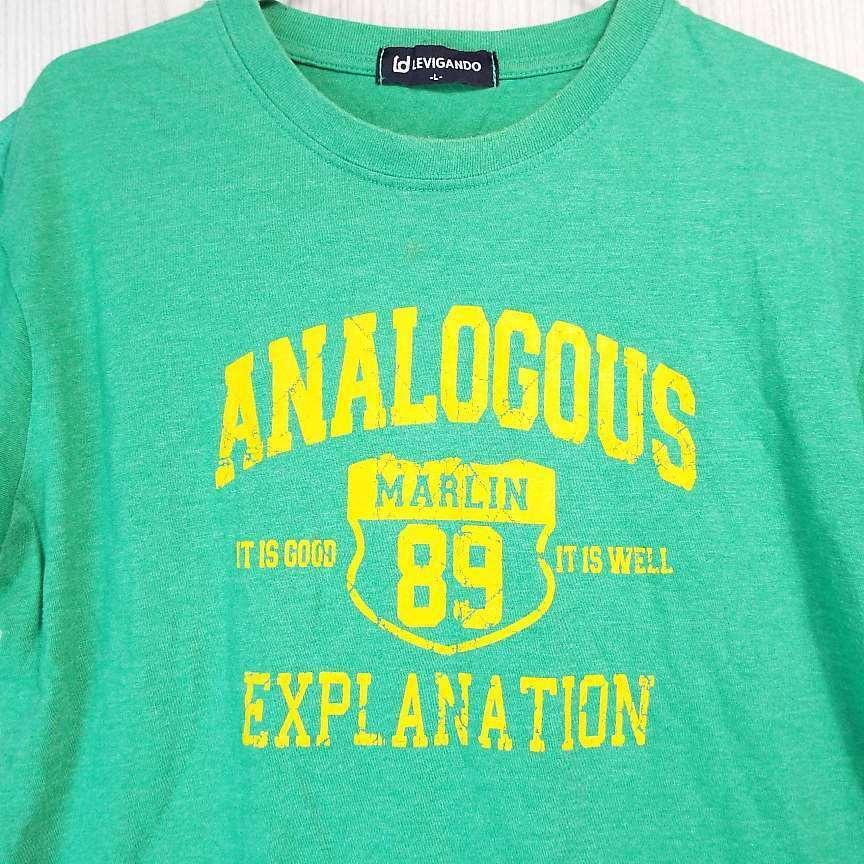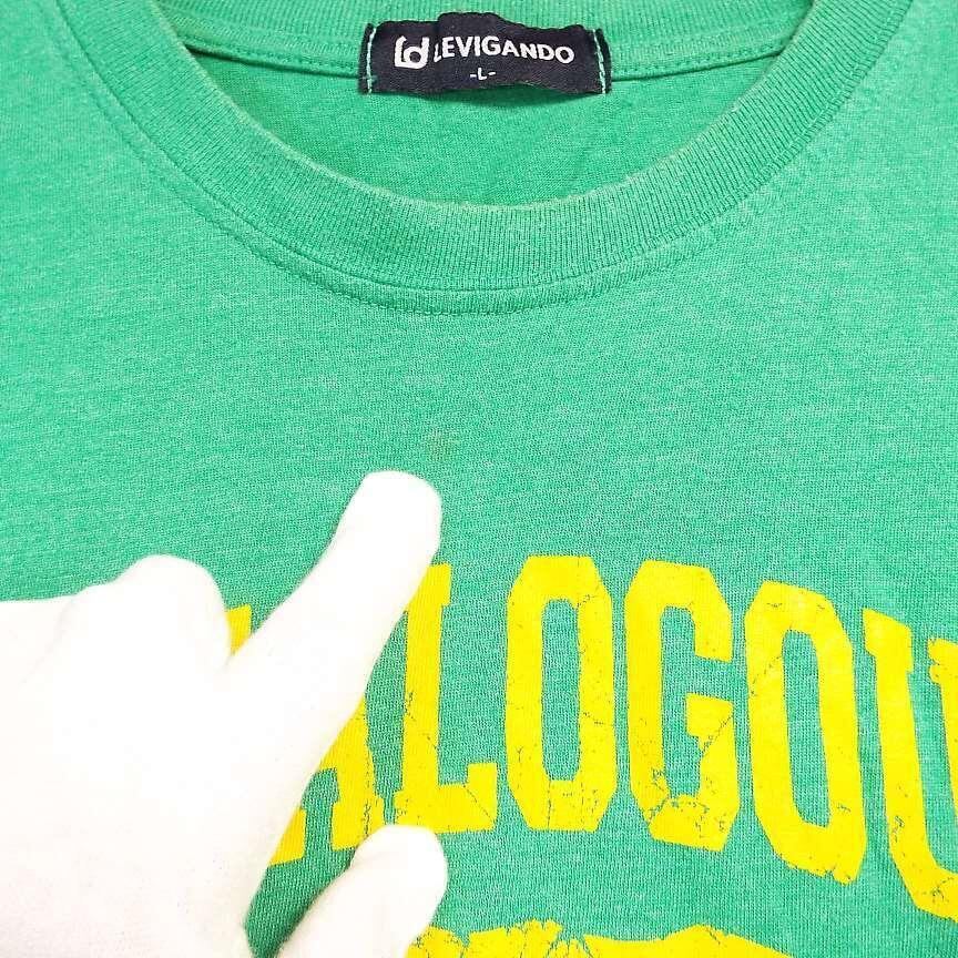 【肩幅45.5cm】【アメカジスタイル】LEVIGANDO 擦れロゴ 丸首 半袖Tシャツ Lサイズ グリーン コットン・ポリエステル(60/40)【湘南倉庫】メンズブランド古着
