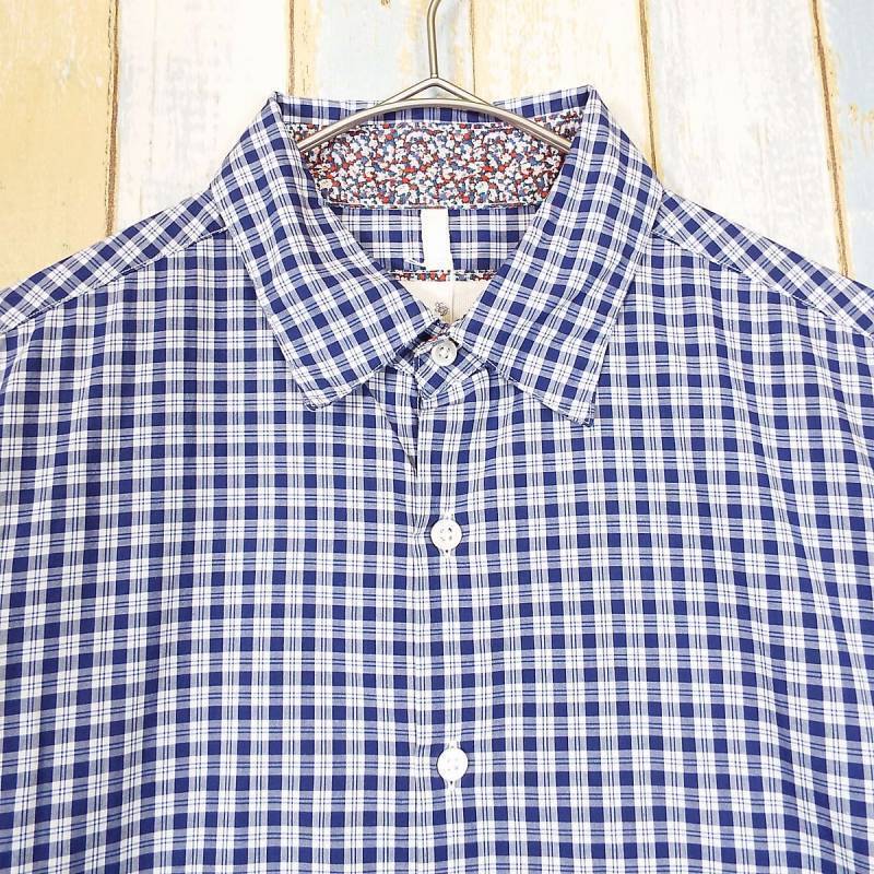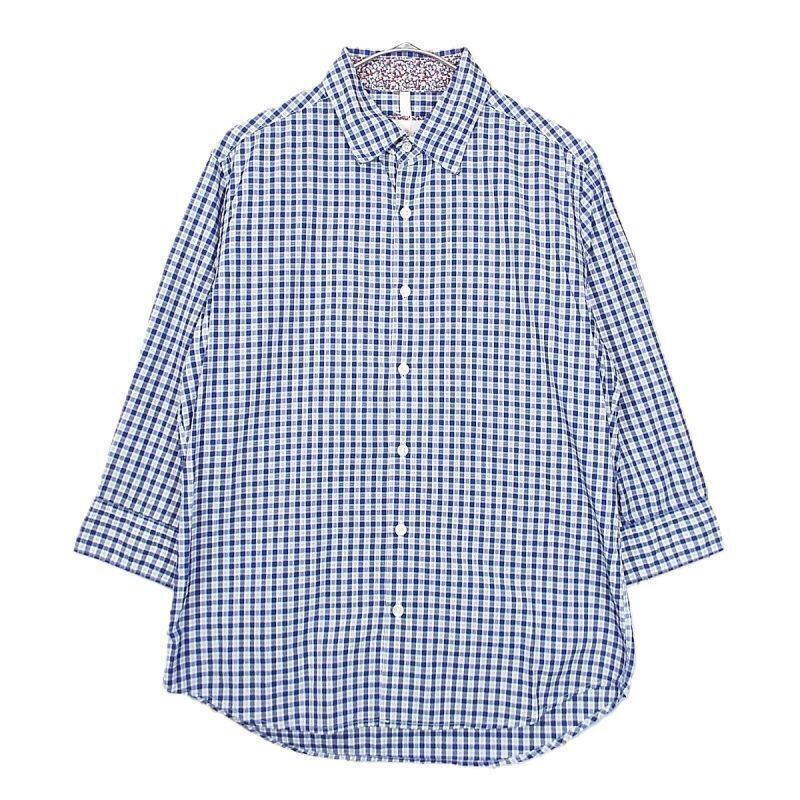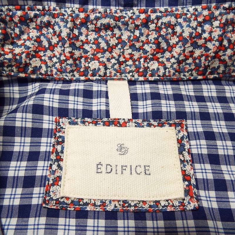 【肩幅42cm】EDIFICE エディフィス 裏前立て チェック柄 7分丈シャツ サイズ:44 ホワイト・ネイビーブルー 綿100%【湘南倉庫】メンズブランド古着