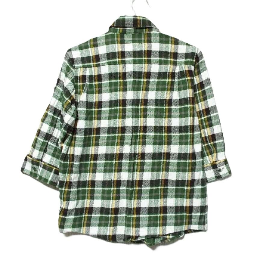 【肩幅40cm】【フランネルシャツ】Christpher Stivo クリストファースティーボ チェック柄 七分袖 ネルシャツ サイズ2 Mサイズ ホワイト・グリーン 綿100%【湘南倉庫】メンズブランド古着 オンブレ
