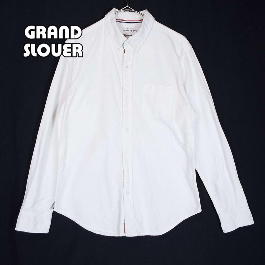【基本のホワイトBD】【GRAND SLAUER】ボタンダウン オックスフォード素材 長袖シャツ Lサイズ(肩幅44cm)ホワイト【湘南倉庫】メンズぶらんど古着