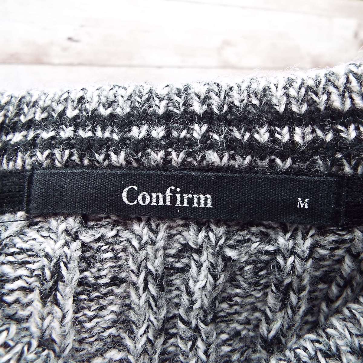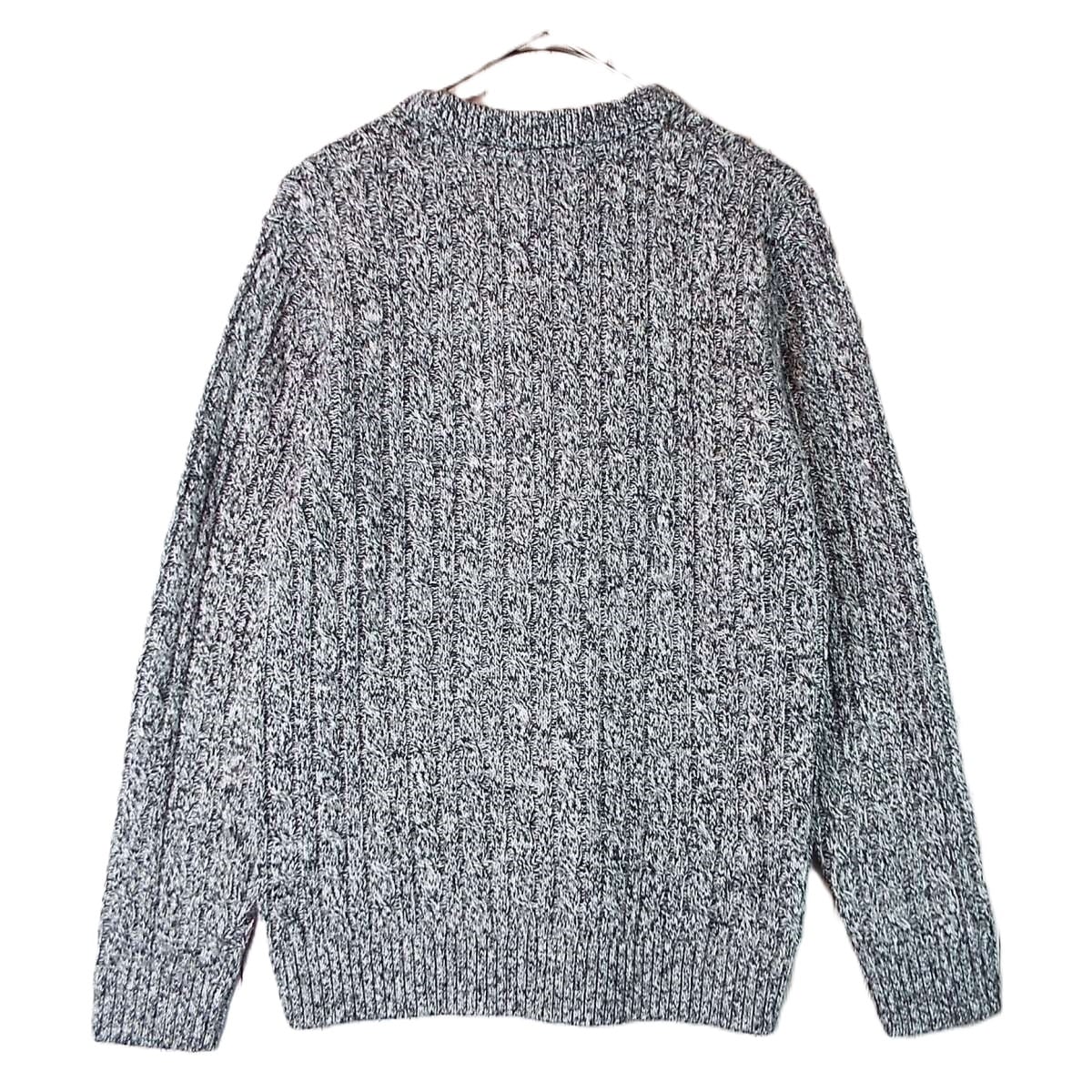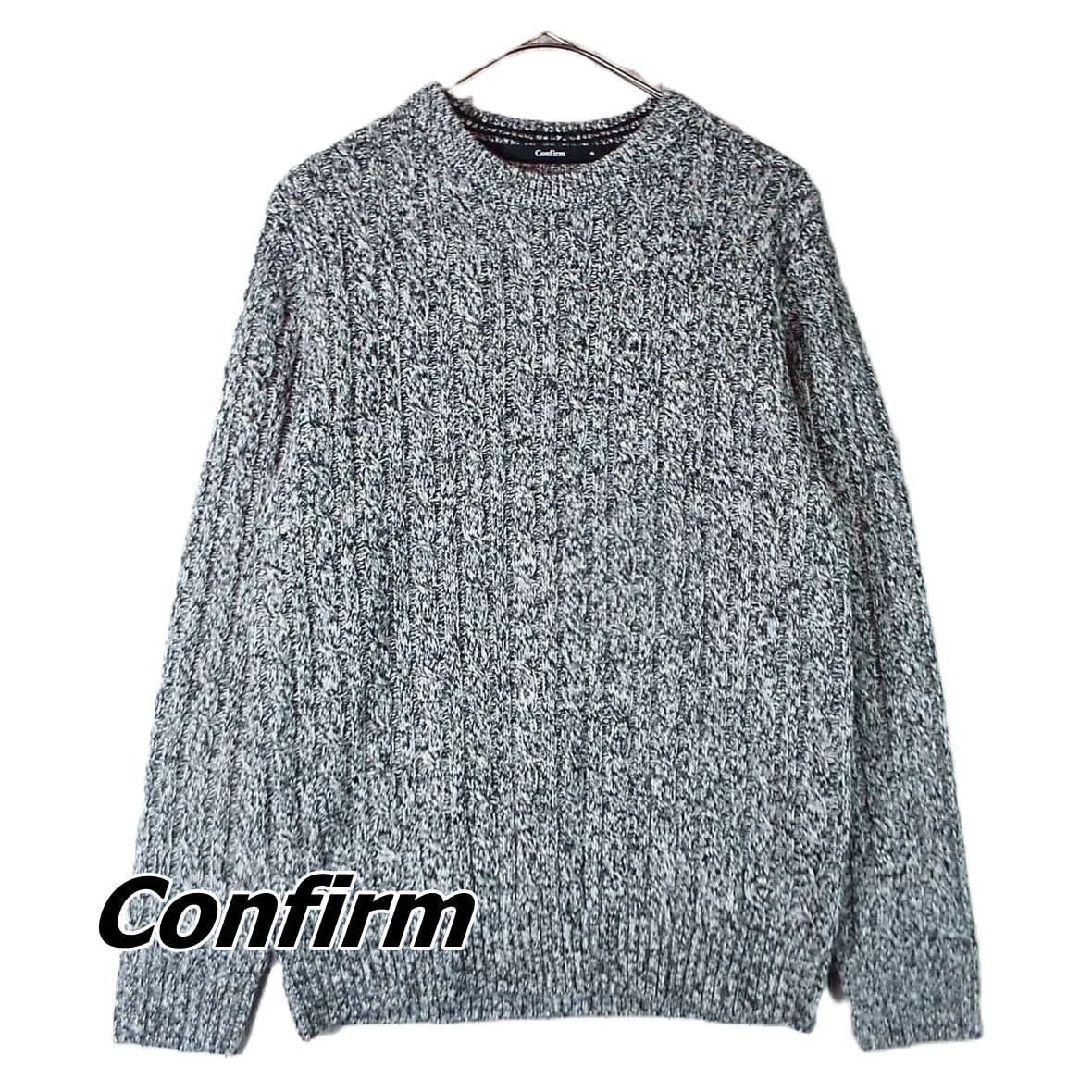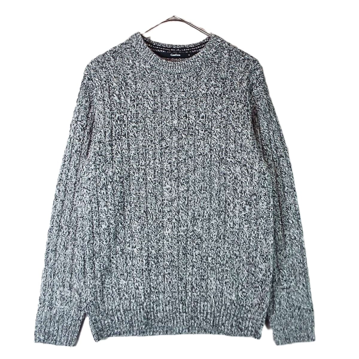 【メランジデザイン】Confirm(コンファーム)ケーブル編み クルーネック 長袖ニットセーター Mサイズ(肩幅42cm)霜降りブラック・グレー【湘南倉庫】メンズブランド古着