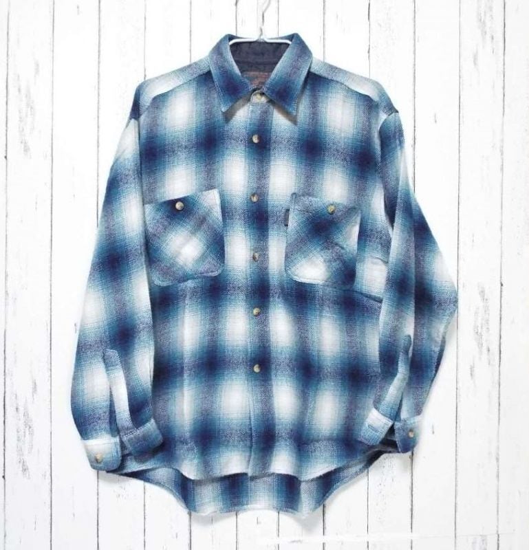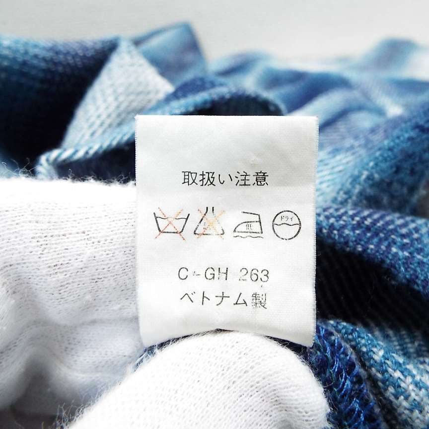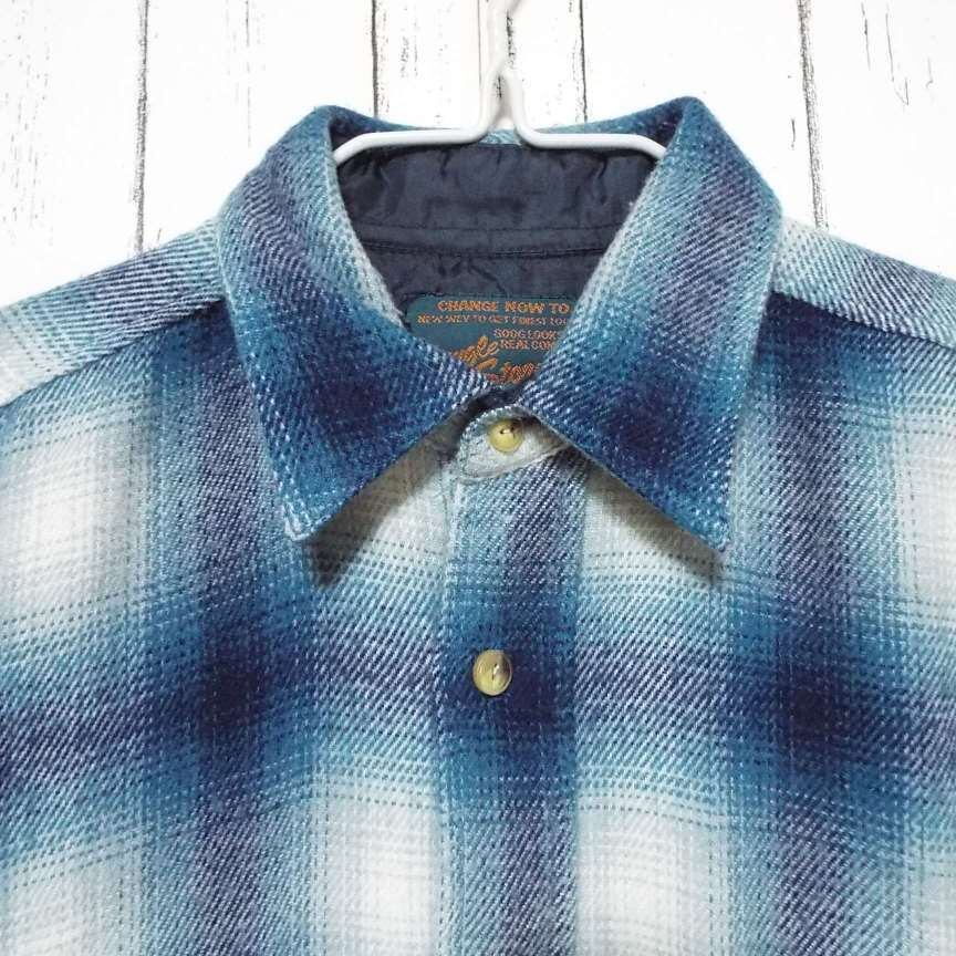 【SOLD OUT】【オンブレシャツ】JUNGLE STORM 猫目ボタン チェック柄 長袖ネルシャツ ホワイト・ブルー Mサイズ(肩幅50cm)【湘南倉庫】メンズ古着