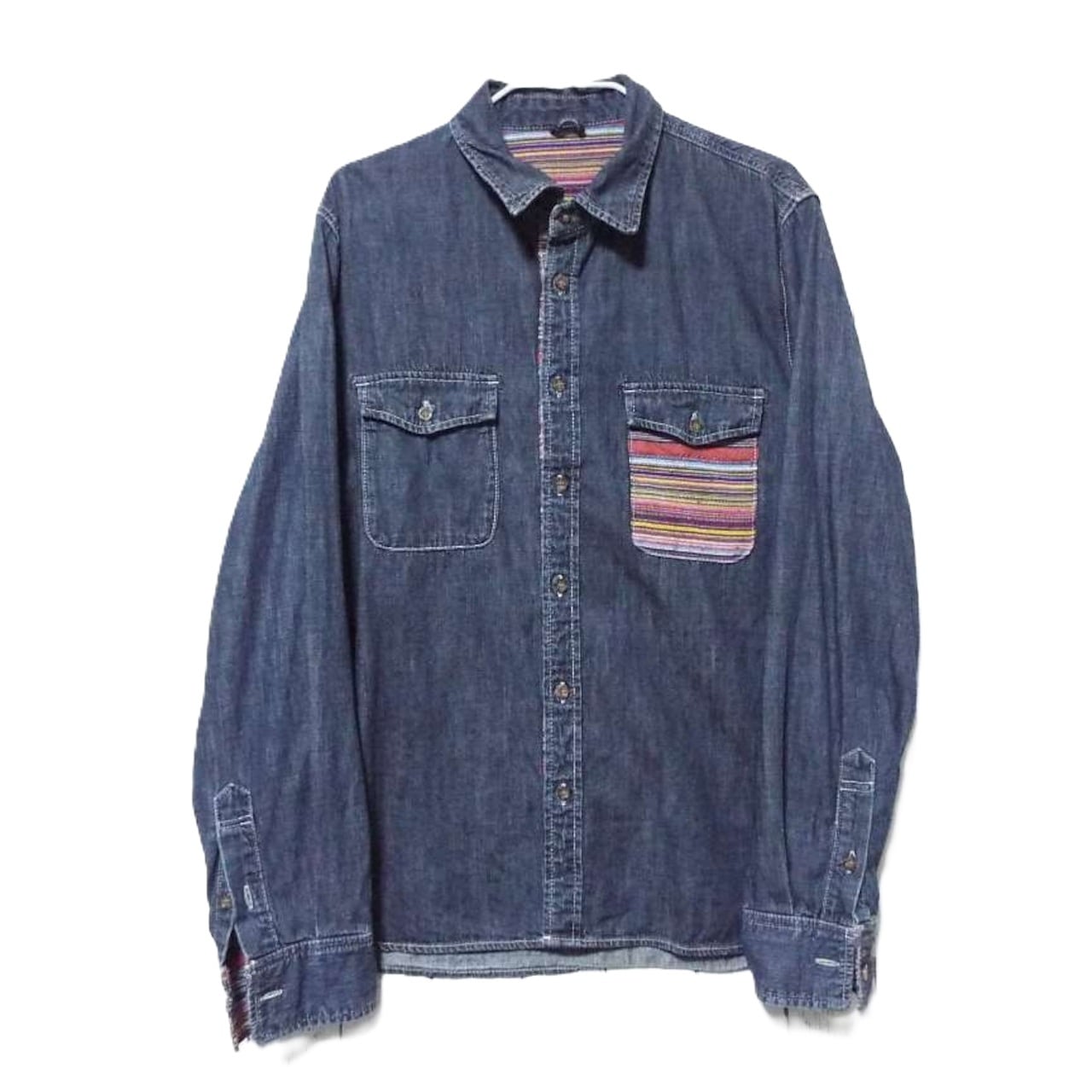 【肩幅45cm】【アメカジ&ネイティブ】sorridere(ソリデル)デニム素材 長袖シャツ Lサイズ インディゴブルー【湘南倉庫】メンズ古着 12353026