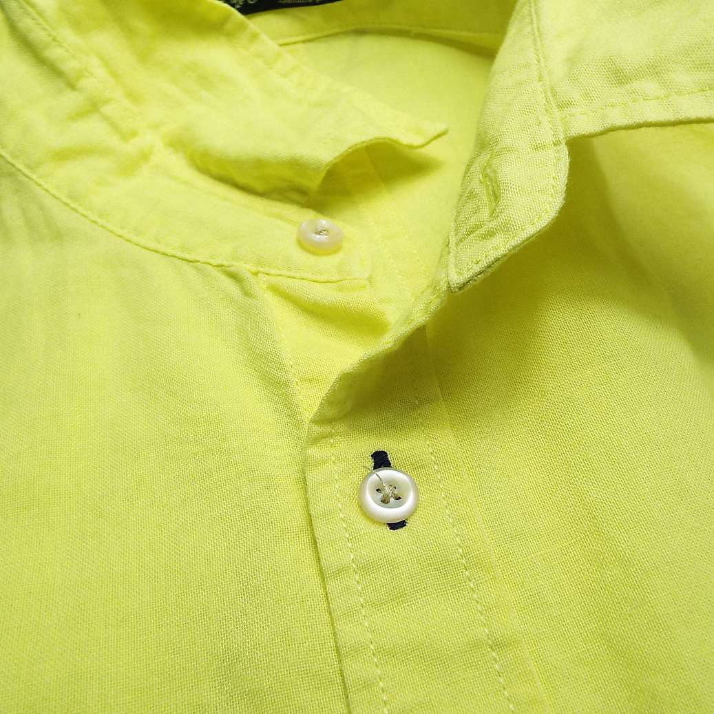 【肩幅47.5cm】Oval Dice オーバル・ダイス リネン・コットン混 8分袖シャツ LLサイズ(肩幅47.5cm)レモンイエロー【湘南倉庫】メンズ古着 4912345012821