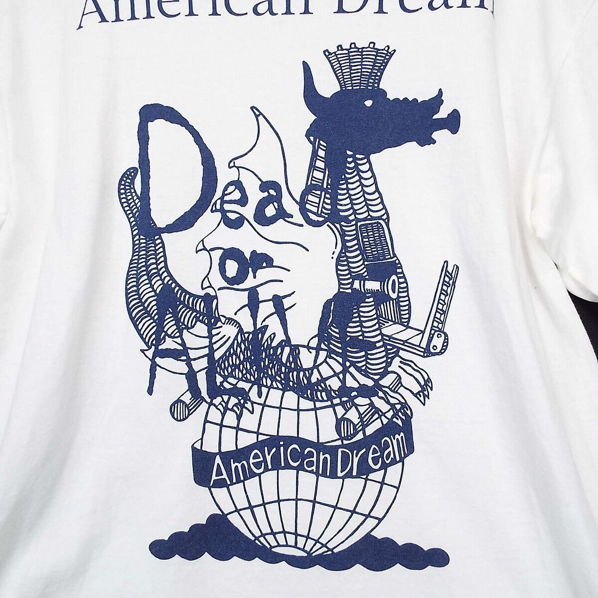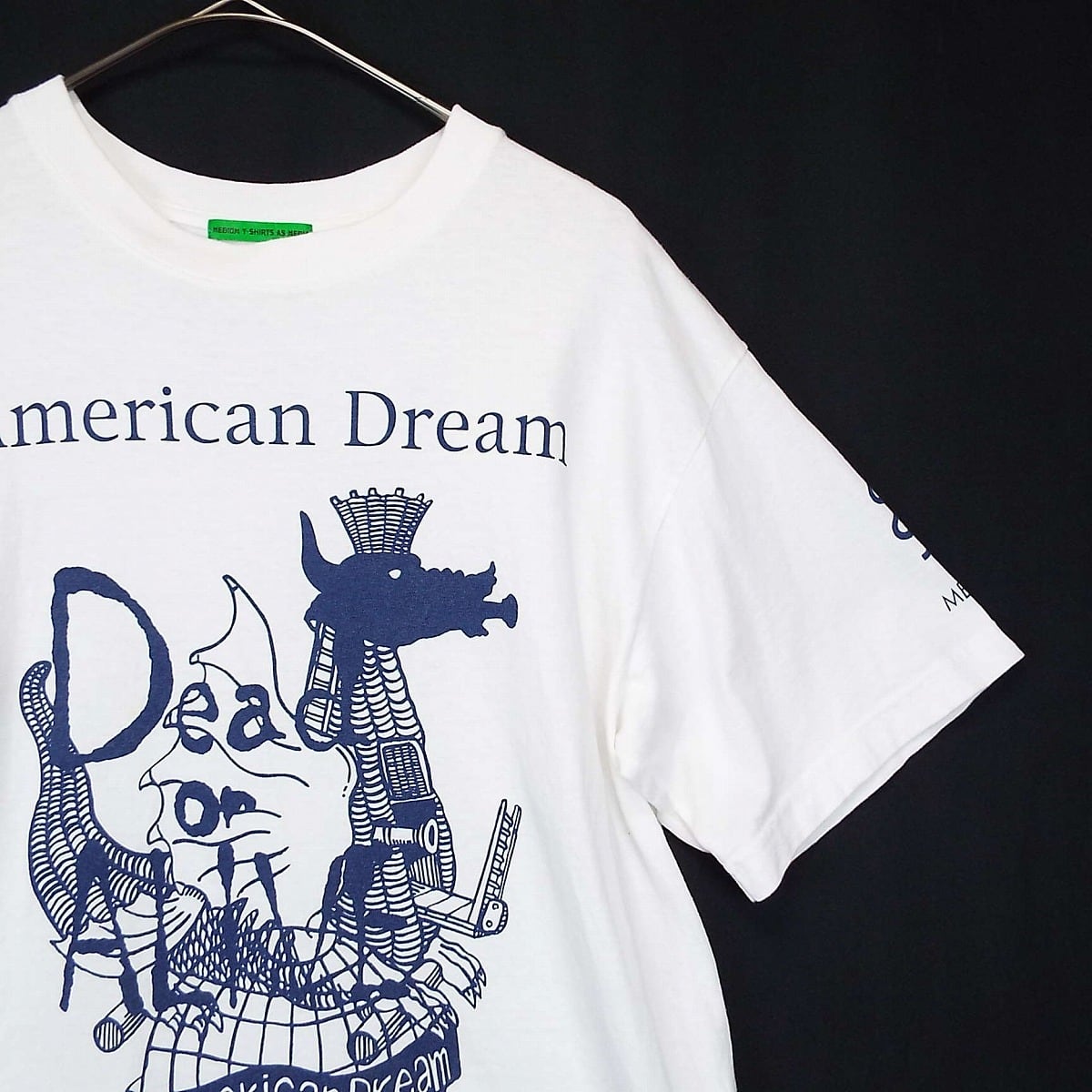 【レアTシャツ】t-SHIRT AS MEDIA american dream グラフィックデザイン 半袖Tシャツ Mサイズ ホワイト コットン100%【湘南倉庫)メンズ古着 4912345012852