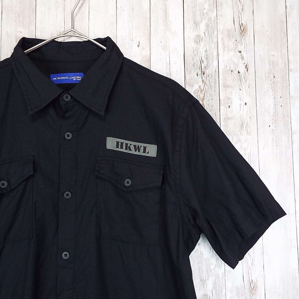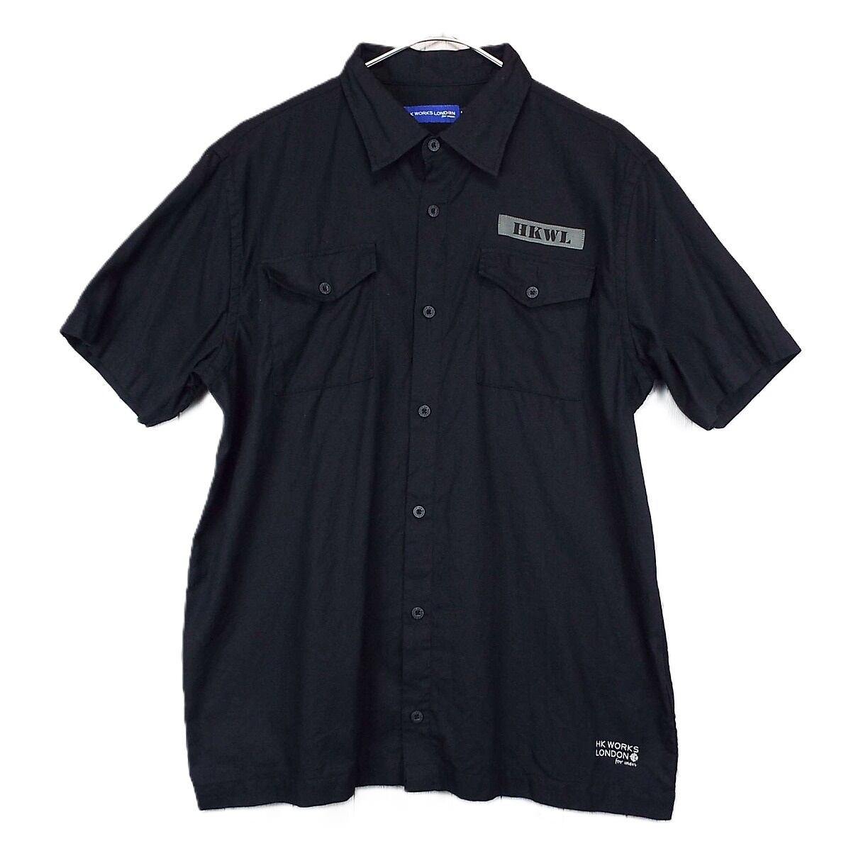 【ワークシャツテイスト】HK WORKS LONDON for men ダブルポケット 半袖シャツ LLサイズ(肩幅 47cm)ブラック コットン100%【湘南倉庫】メンズ古着 4912345013231