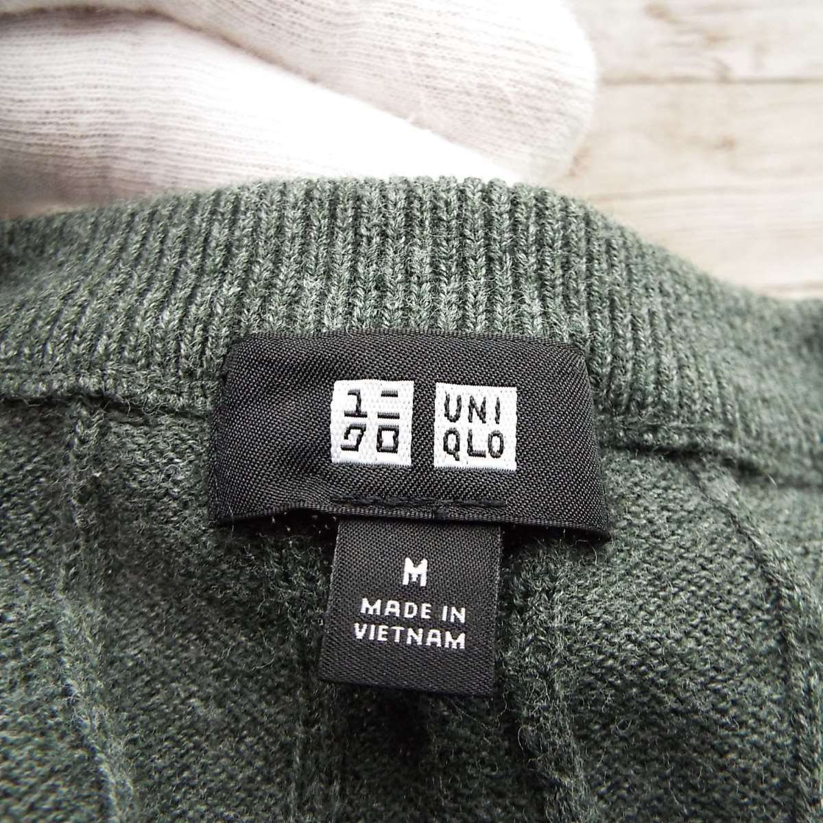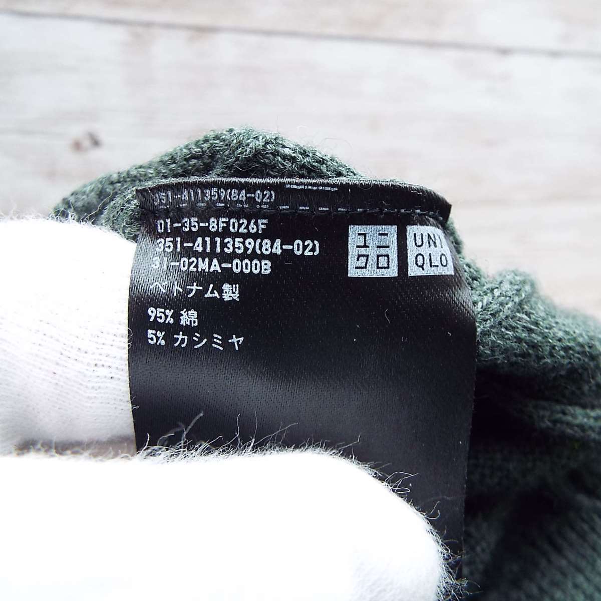 【カシミアブレンド】UNIQLO ユニクロ ケーブル編み クルーネック 長袖ニットセーター Mサイズ(肩幅 42cm)グリーン コットンカシミア混紡【湘南倉庫】メンズ古着 12354672
