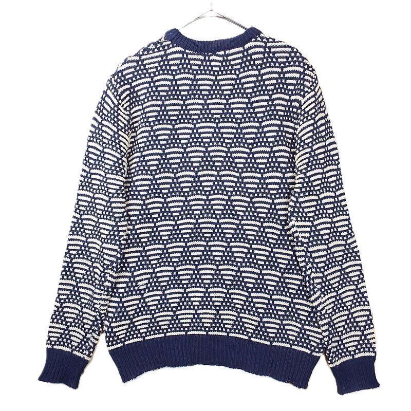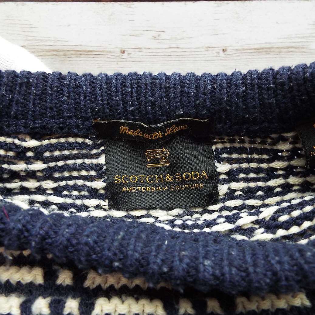【肩幅47cm】scotch&soda(スコッチアンドソーダ) パターン総柄 長袖ニットセーター Sサイズ ネイビー・アイボリー【湘南倉庫】メンズ古着 ユニセックス [682222777563|1-27]