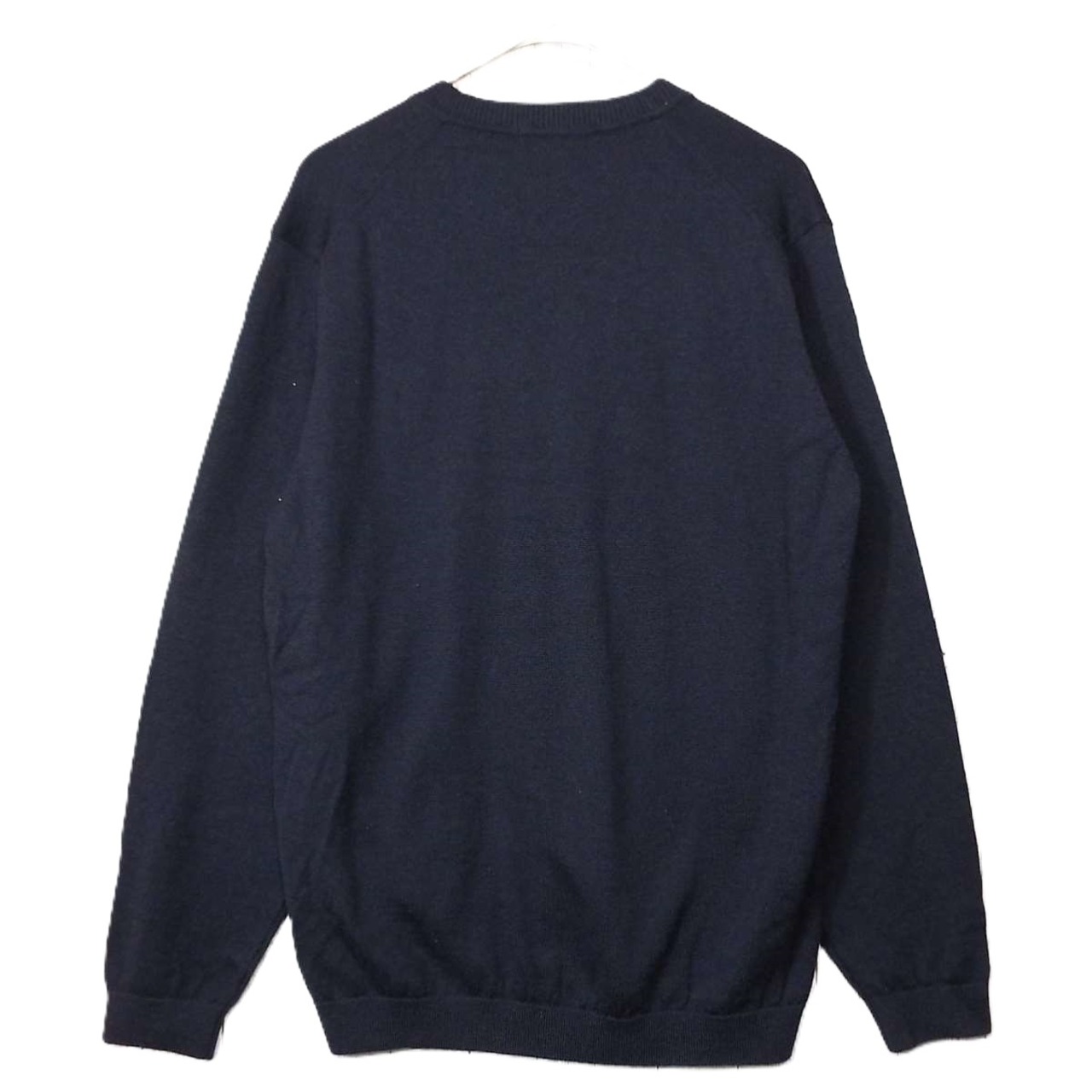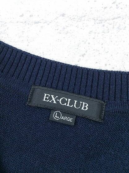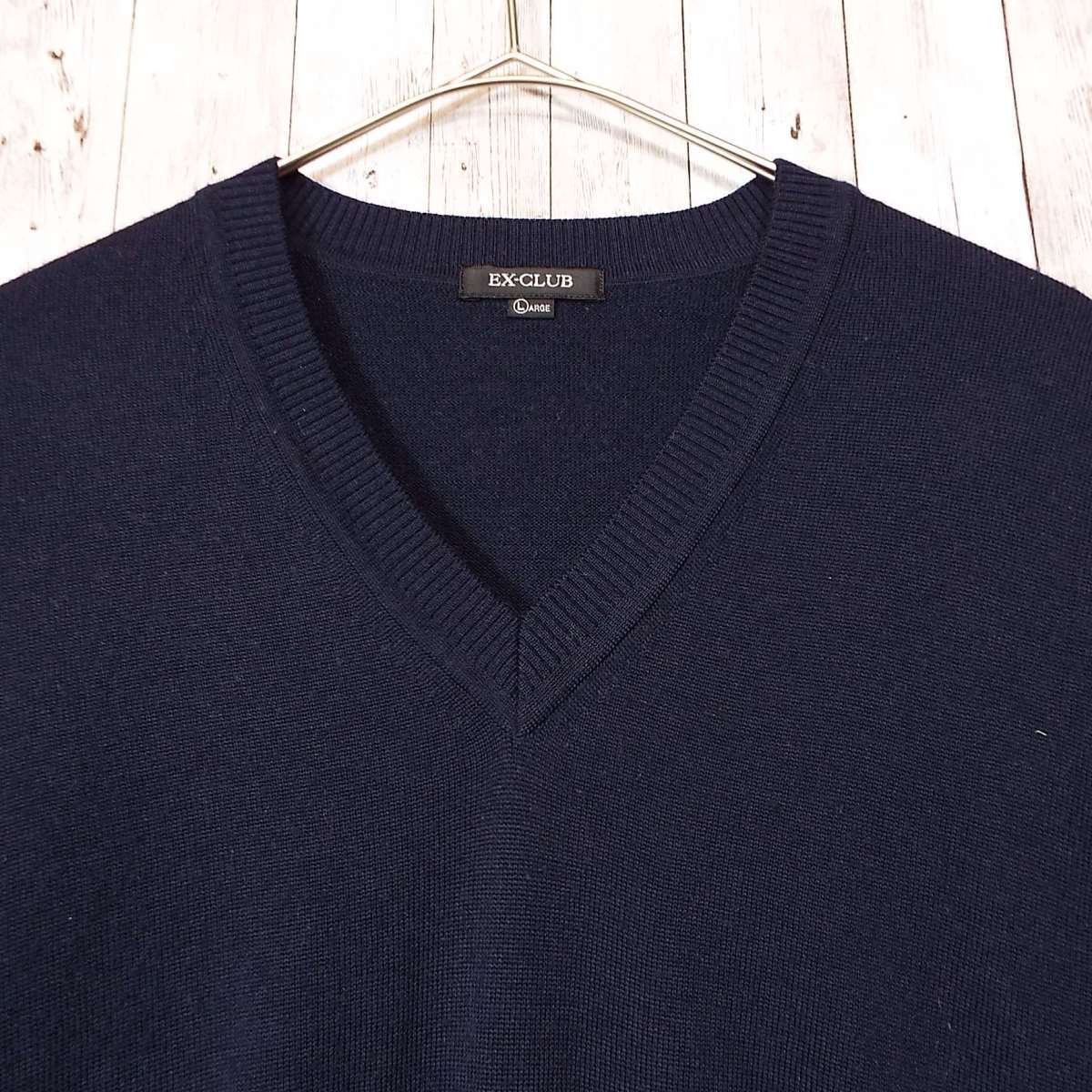 【オーナーのオススメ】EX-CLUB イーエクスクラブ(レナウン)ハイゲージ 長袖 Vネック ニットセーター Lサイズ(肩幅43.5cm)ネイビー【湘南倉庫】メンズブランド古着