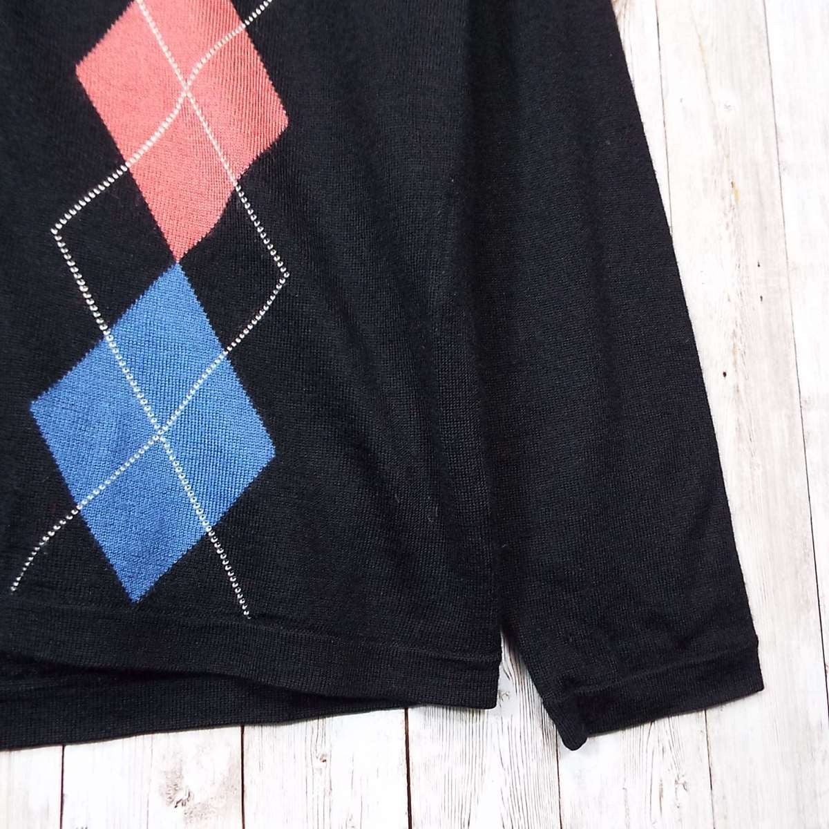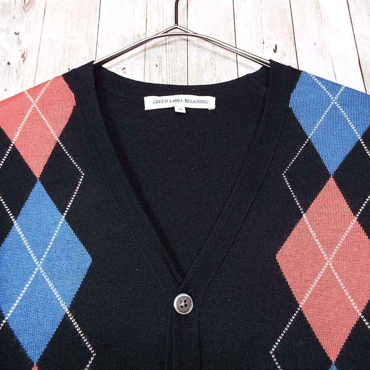 【アーガイル柄】green label relaxing(グリーンレーベル・リラクシング) UNITED ARROWS ハイゲージ ウール混 長袖ニットカーディガン Mサイズ(肩幅43cm)ブラック・ブルー・ピンク【湘南倉庫】メンズブランド古着