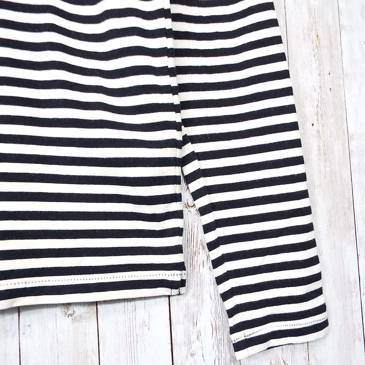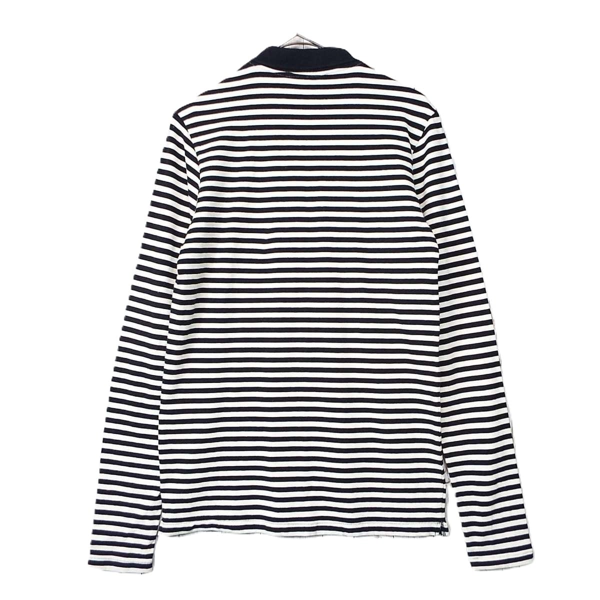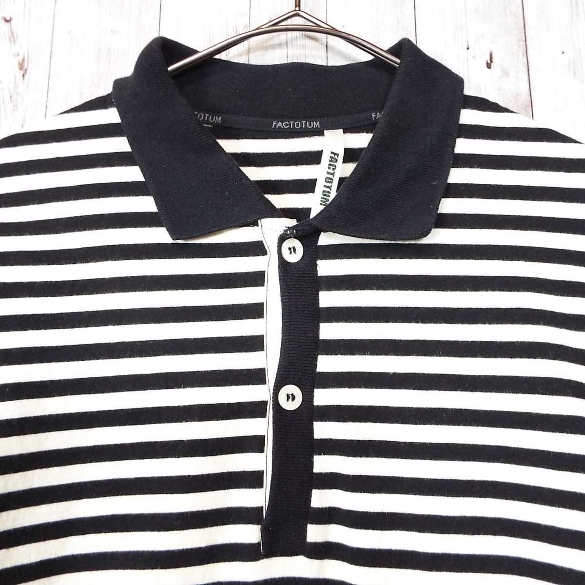あと説明文【日本製】FACTOTUM(ファクトタム) 伸縮素材 ボーダー柄 長袖ポロシャツ サイズ:46(肩幅39cm)アイボリー・ブラック【湘南倉庫】ブランド古着