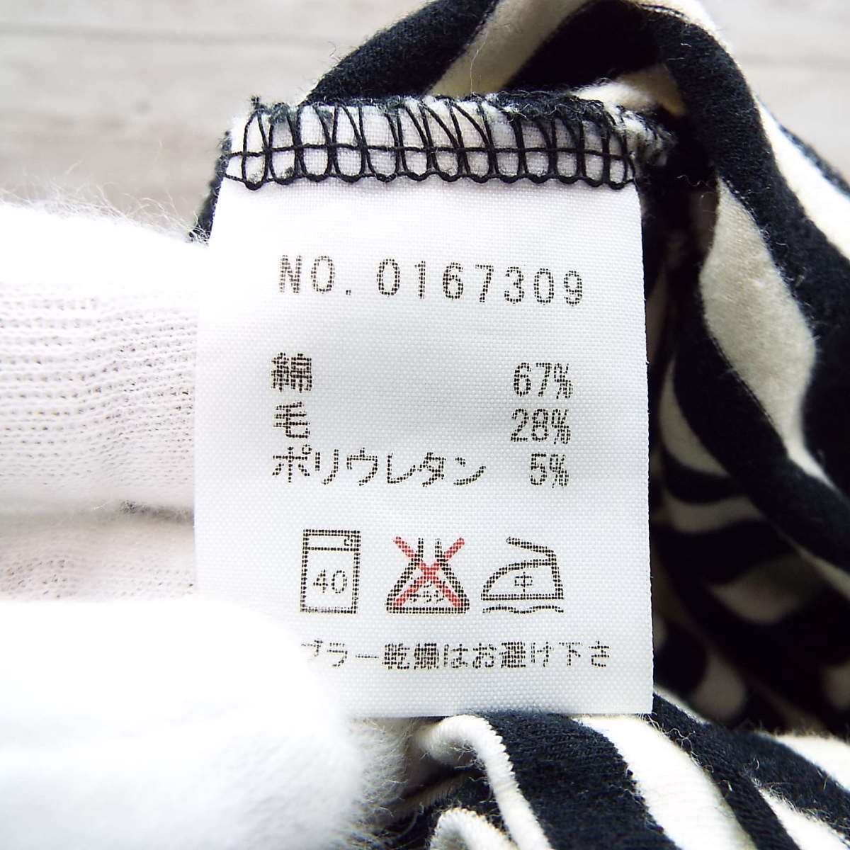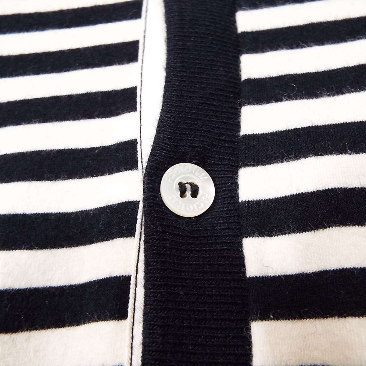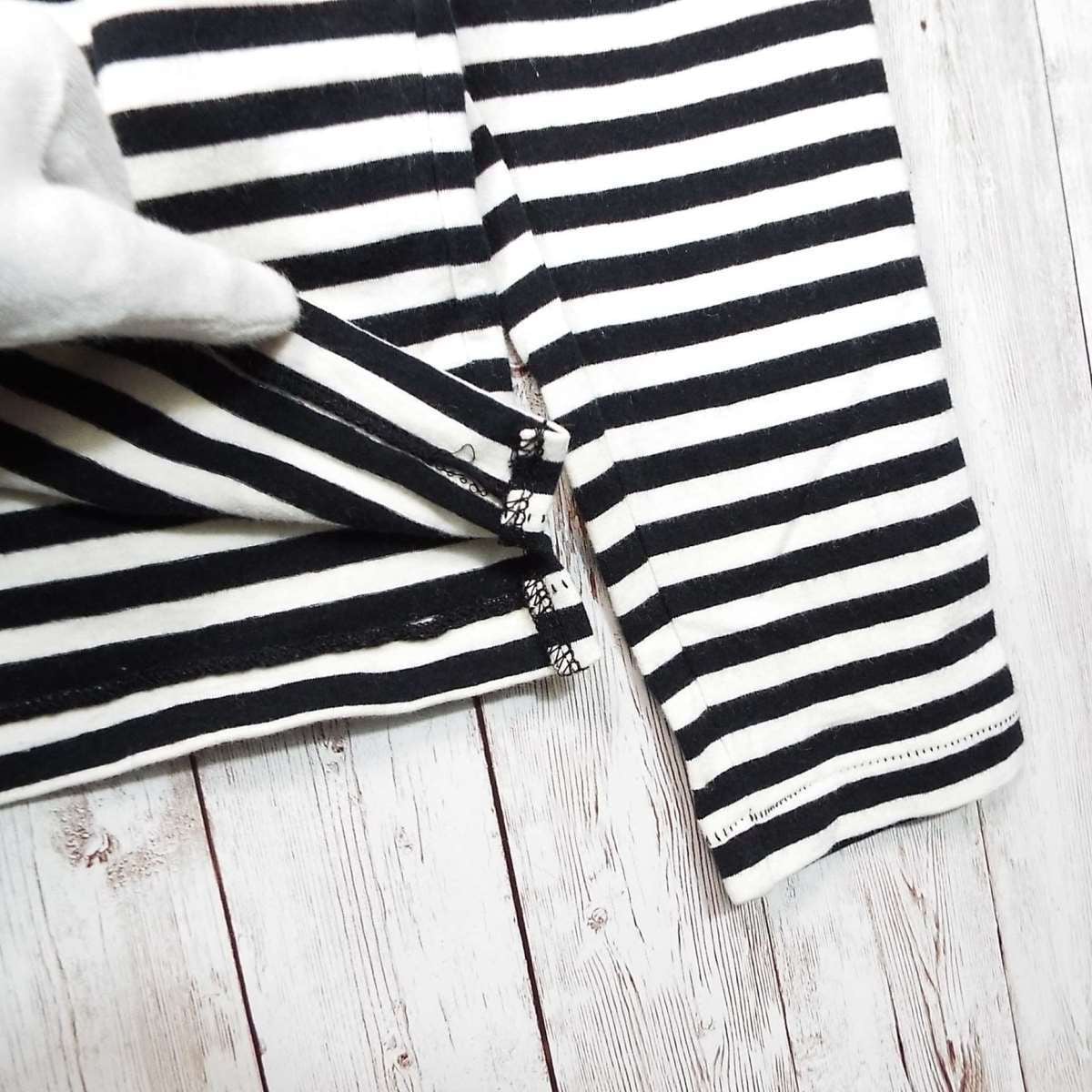 あと説明文【日本製】FACTOTUM(ファクトタム) 伸縮素材 ボーダー柄 長袖ポロシャツ サイズ:46(肩幅39cm)アイボリー・ブラック【湘南倉庫】ブランド古着