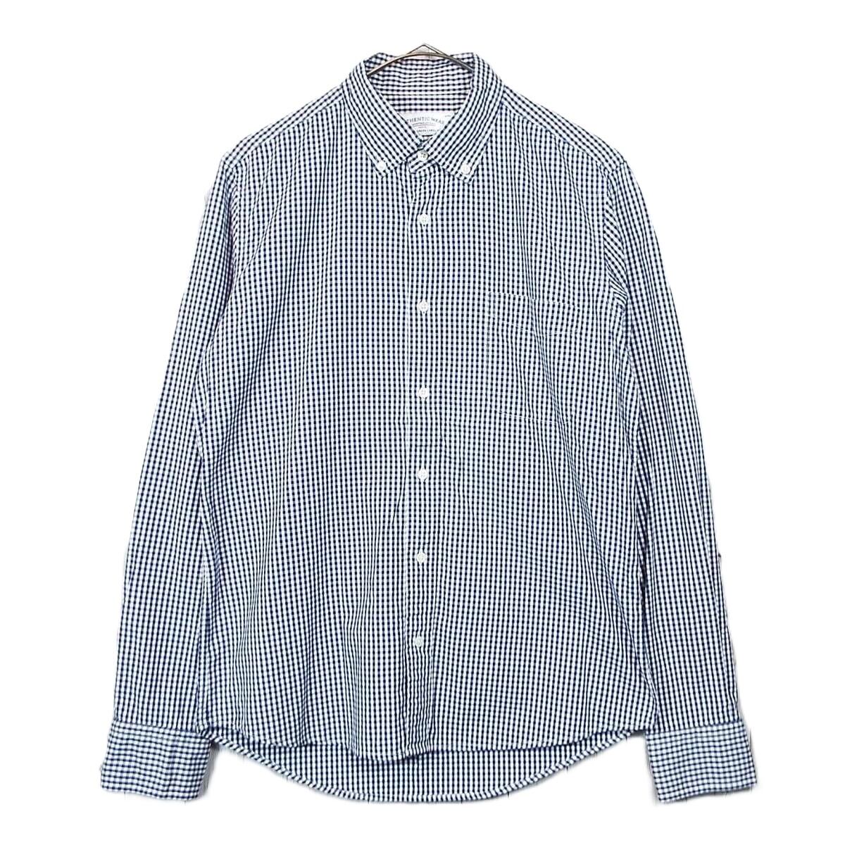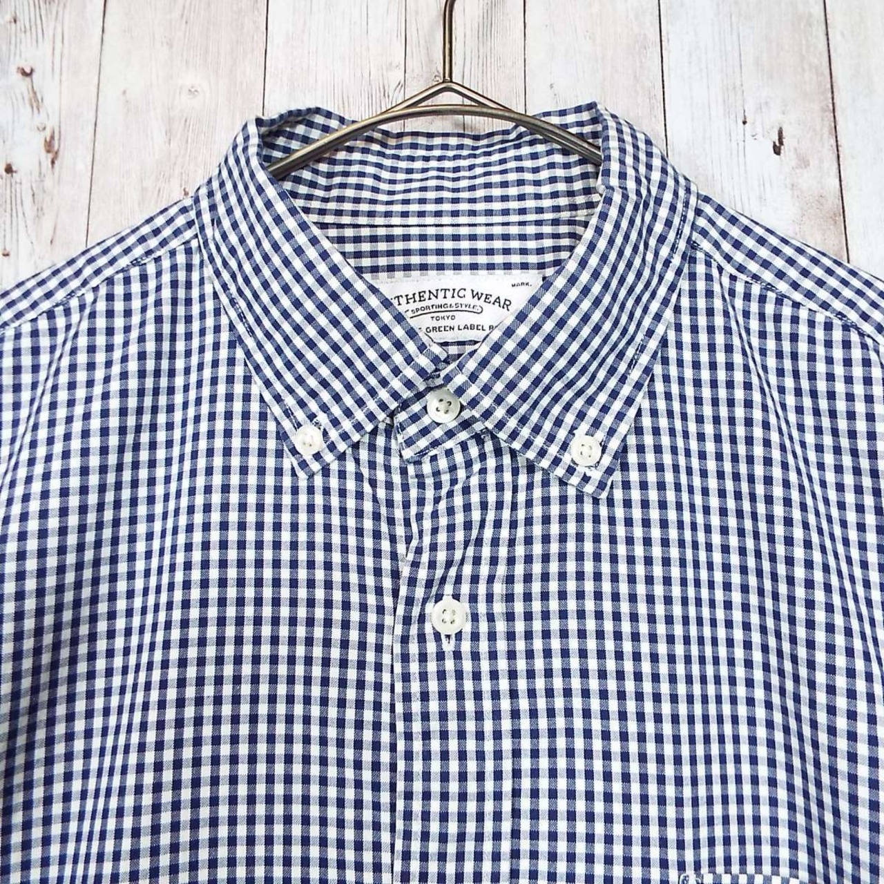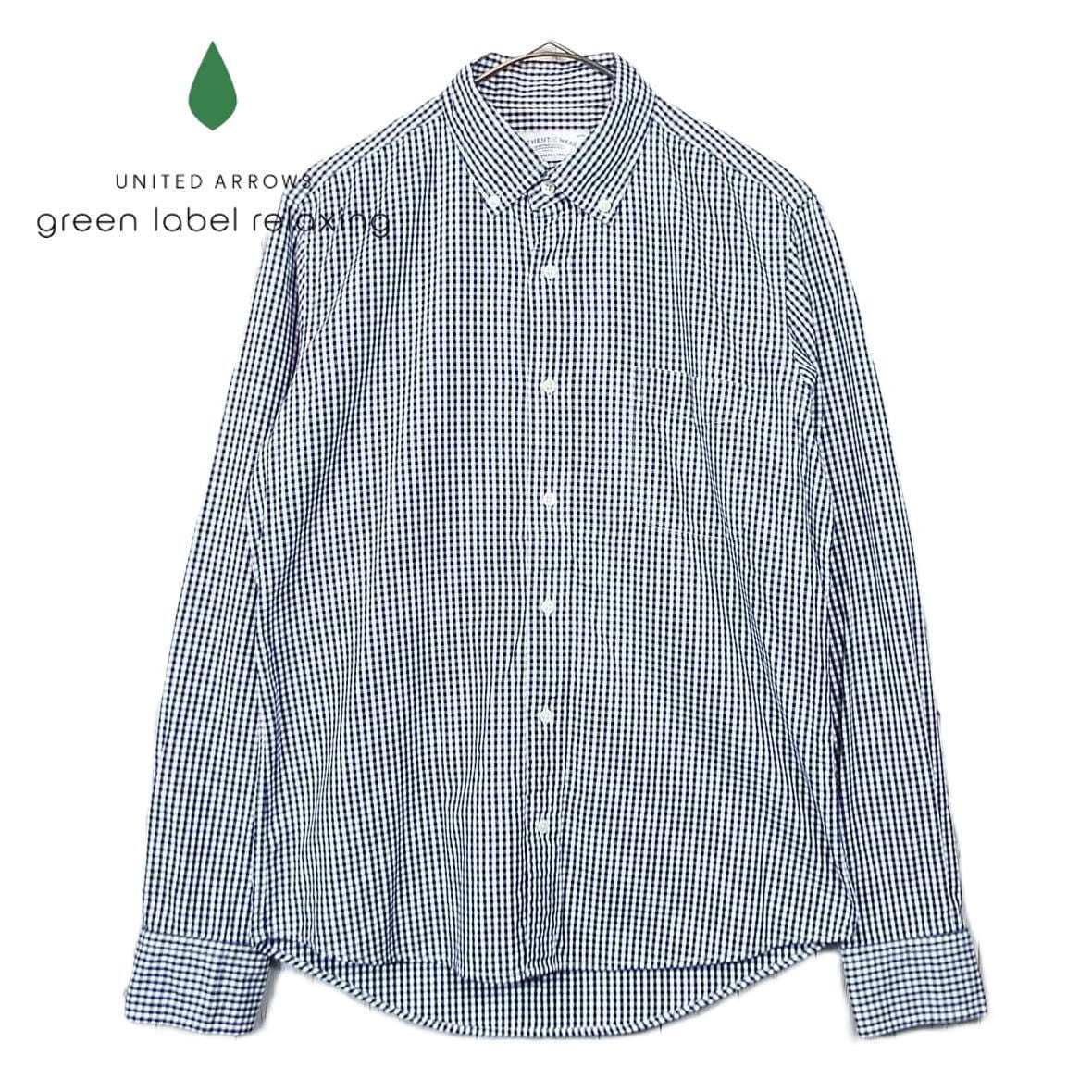 【肩幅43cm】green label relaxing(グリーンレーベルリラクシング)ギンガムチェック ボタンダウンBD 長袖シャツ Mサイズ ホワイト・ネイビー【湘南倉庫】メンズブランド古着