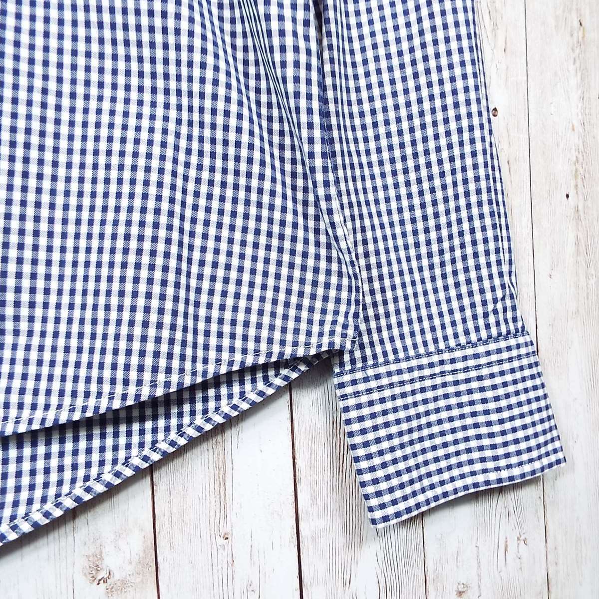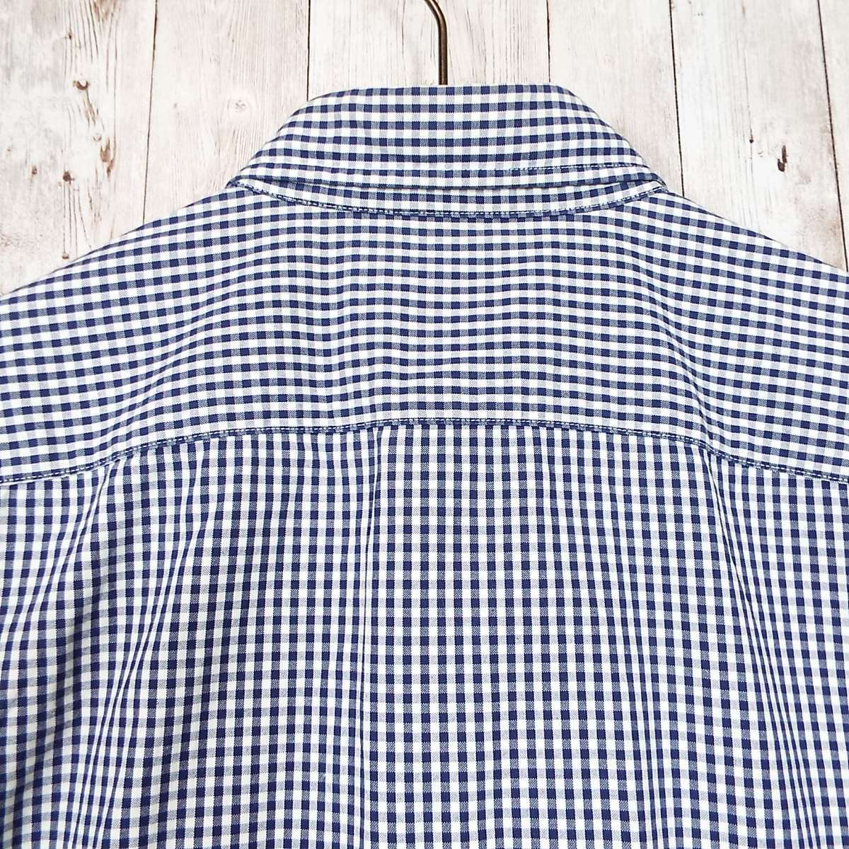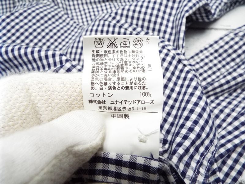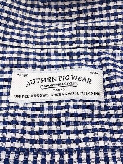 【肩幅43cm】green label relaxing(グリーンレーベルリラクシング)ギンガムチェック ボタンダウンBD 長袖シャツ Mサイズ ホワイト・ネイビー【湘南倉庫】メンズブランド古着