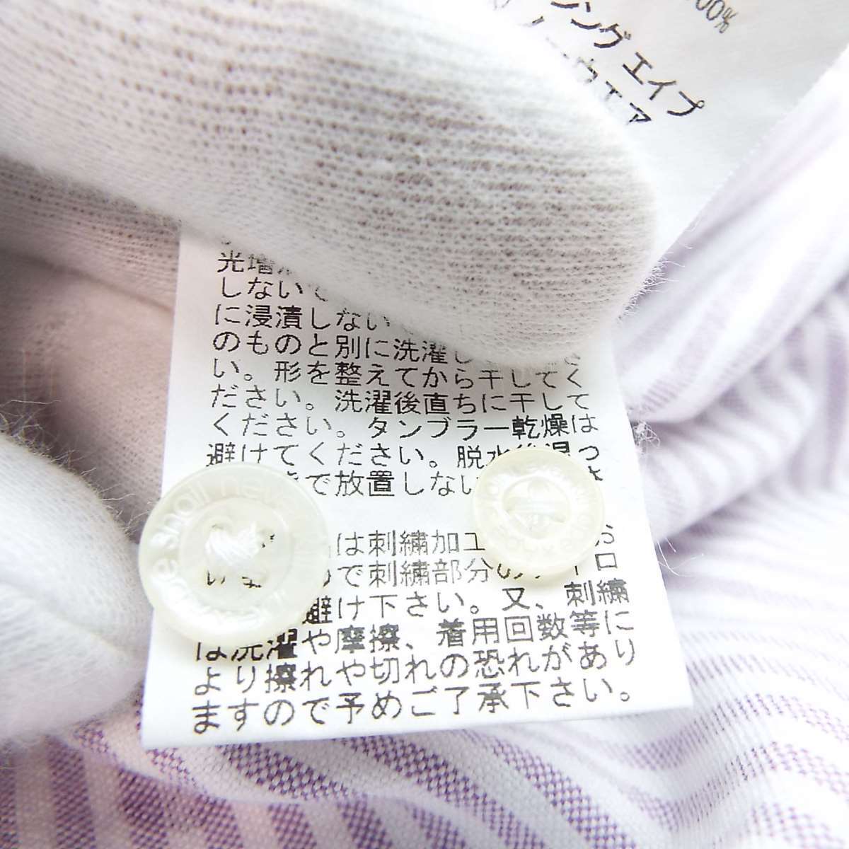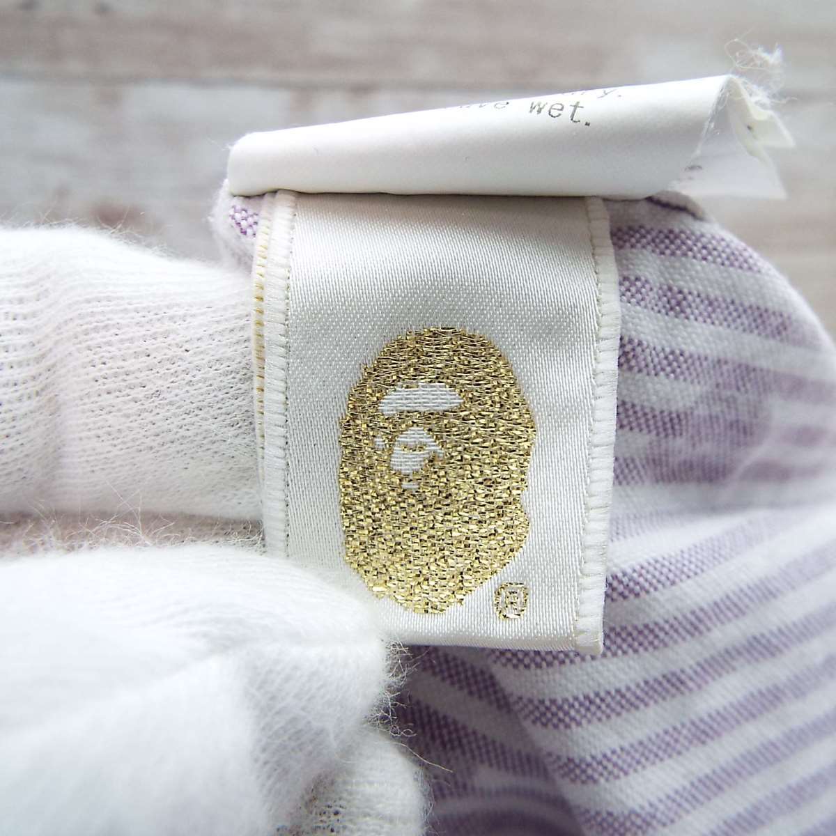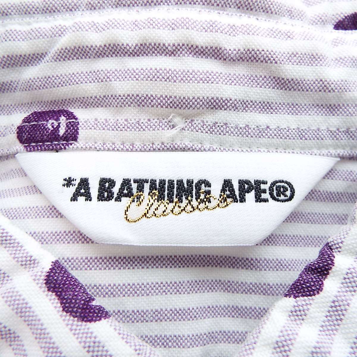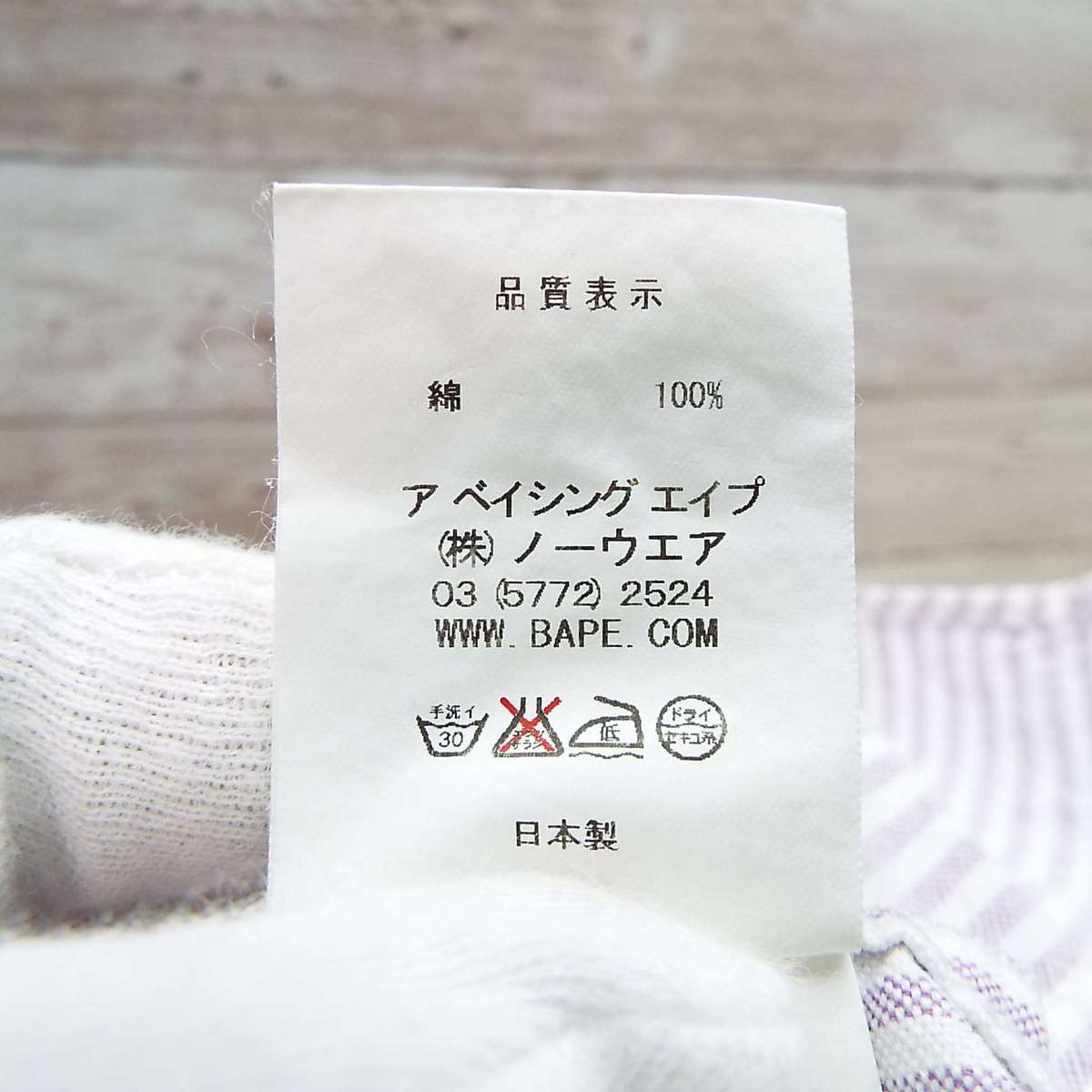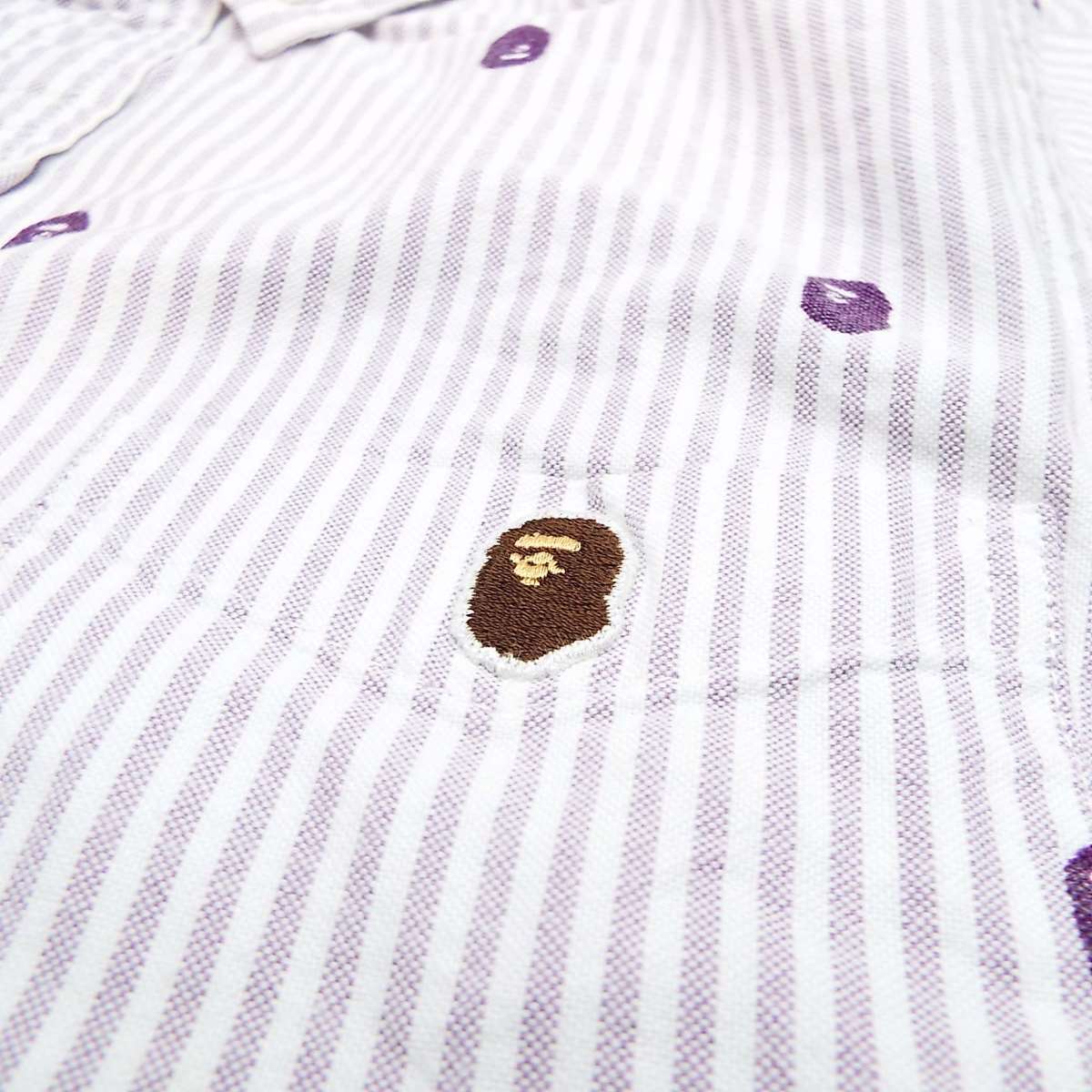 【オールドAPE(小柄男子)】A BATHING APE(ア ベイシング エイプ) APE HEAD 総柄 ストライプ 半袖シャツ XSサイズ(肩幅34.5cm)ホワイト×パープル【湘南倉庫】メンズ古着 裏原