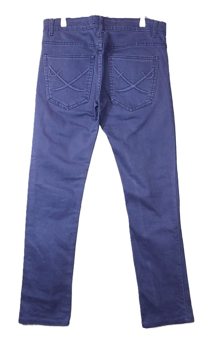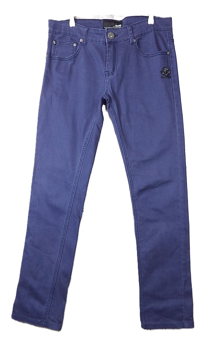 【元ロエンデザイナー高原啓氏】レア ABORDAGE by HIROMU TAKAHARA(アボルダージュ バイ ヒロム タカハラ)パイレーツ ストーンパッチ ジッパーフライ 5ポケット スリムフィット ボトムスパンツ サイズ44(ウエスト87cm)濃紫(パープル系)【湘南倉庫】メンズブランドフルギ